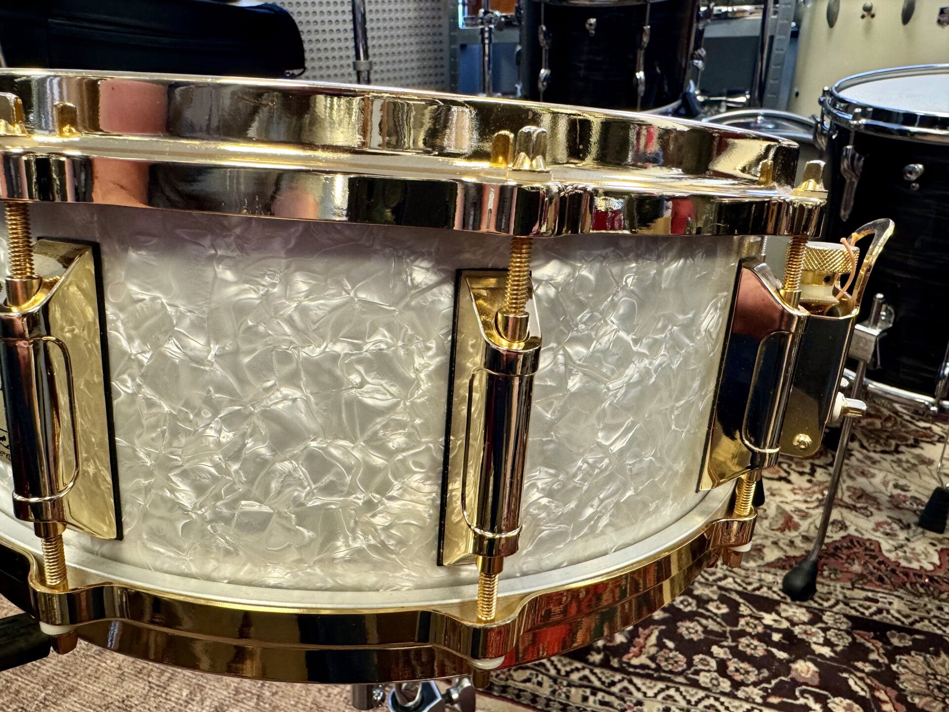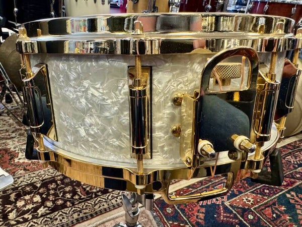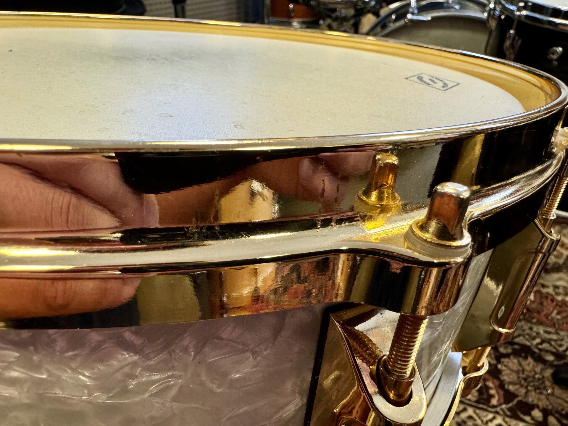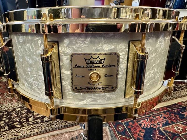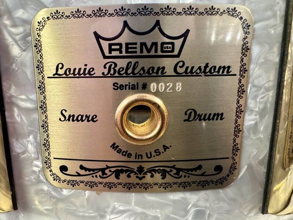 Near mint condition 14” x 5,5” Remo Louie Bellson Limited Edition Signature snare. This particular one is number 28 of 1000 pieces made. Gold plated hardware and WMP finish.