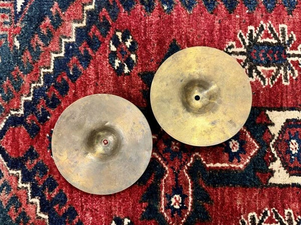 Brandless 6" mini hihat made from brass. Funny little hihat that could be great to add to a marching snare or alike. The other option is to use both cymbals seperately as (bell-like) effect cymbals.