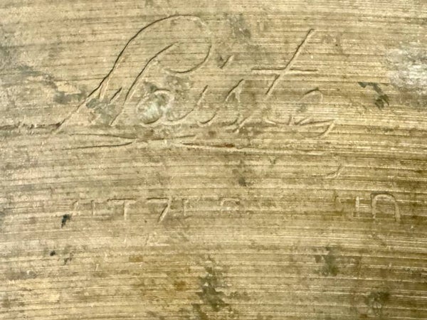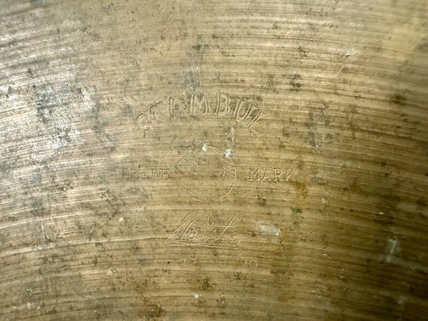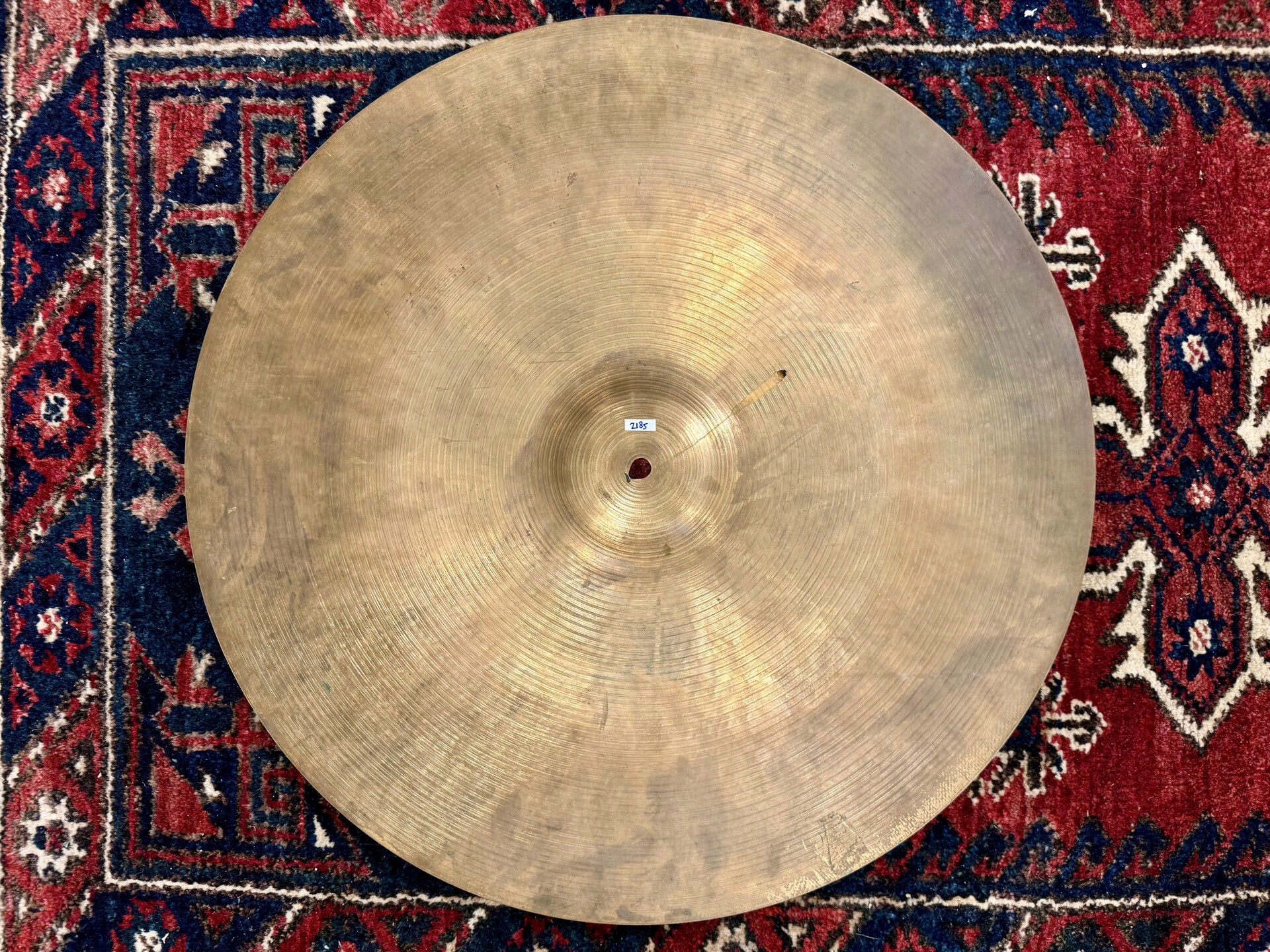 20" Paiste Stambul with the "Narrow Stamp" making it a late 1960s cymbal with the NS12 alloy. It has a great patina build up over the past 50+ years and has a bright, yet dark tone. It has a strong full bell sound and a nice crash sound. It has a weight of 2185 grams, so it's more of a ride that allows you to shoulder it, making it a great main ride for jazz or big band.