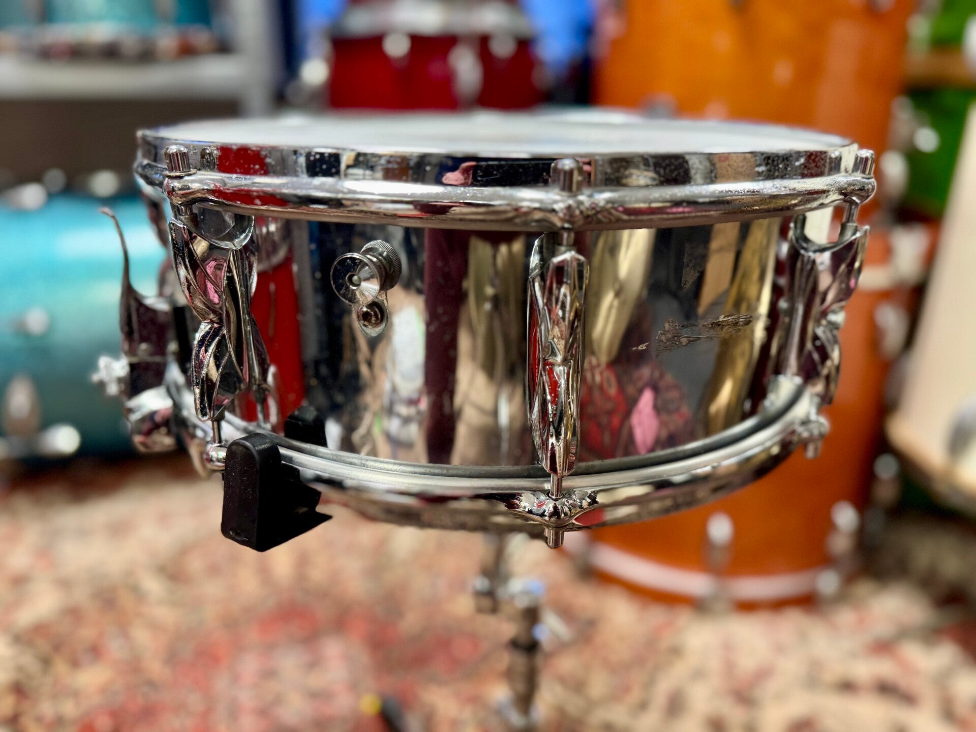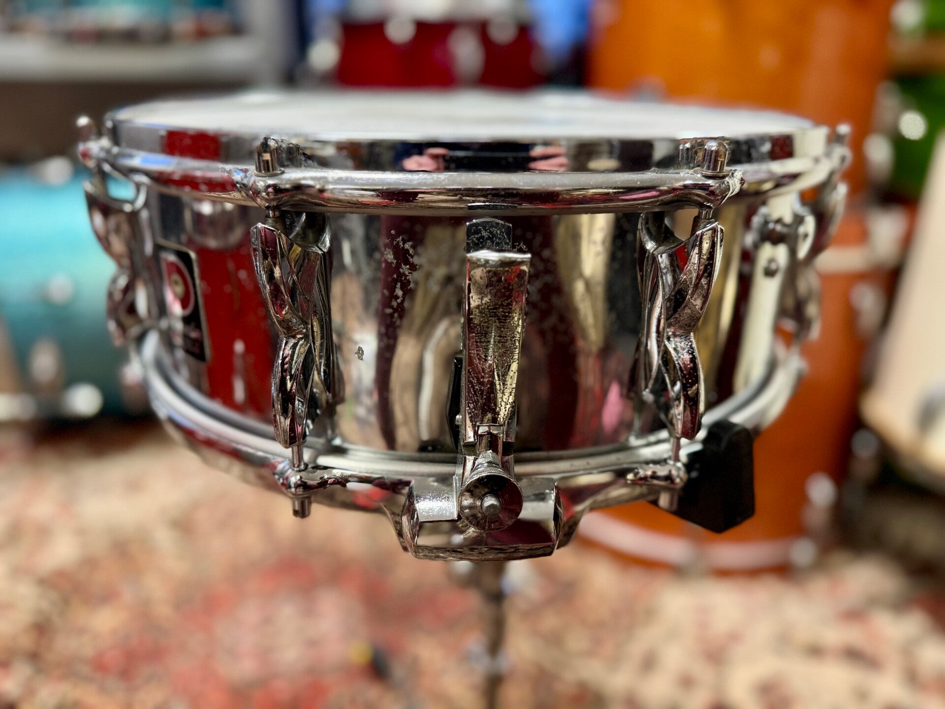 Players grade 14" x 5" Premier 2000 snare. Shows a whole bunch of dents and scratches, but still sounds and plays fantastic. The floabeam parallel mechanic works smoothly.