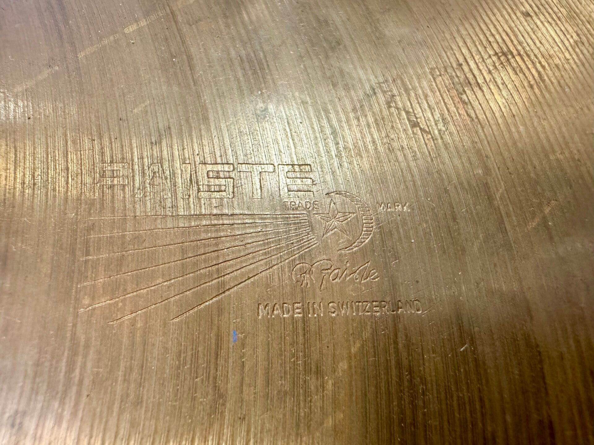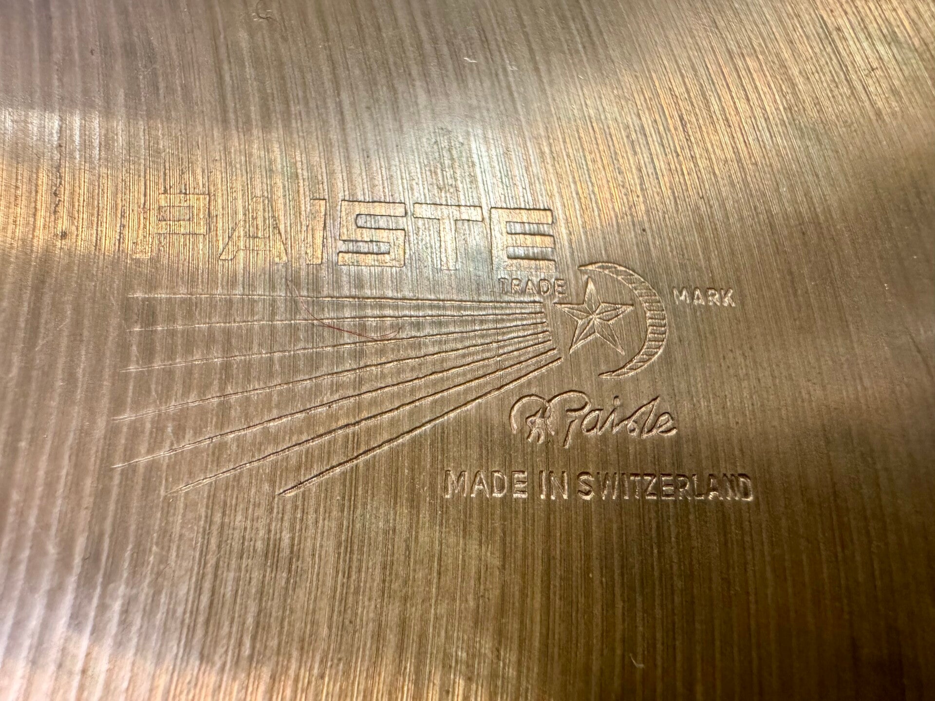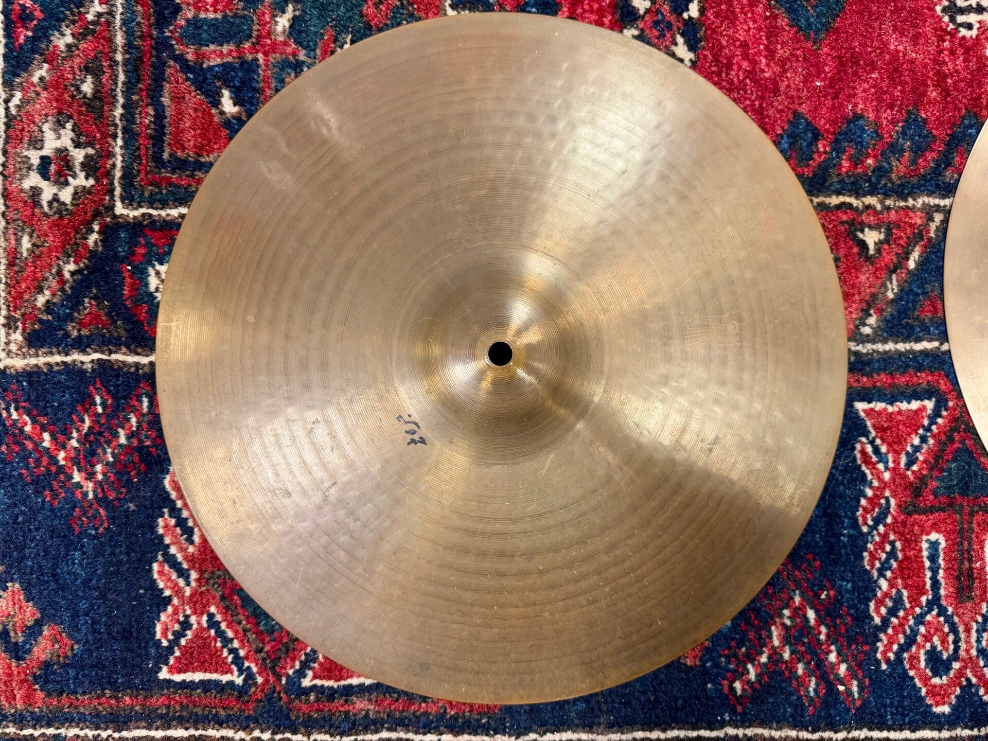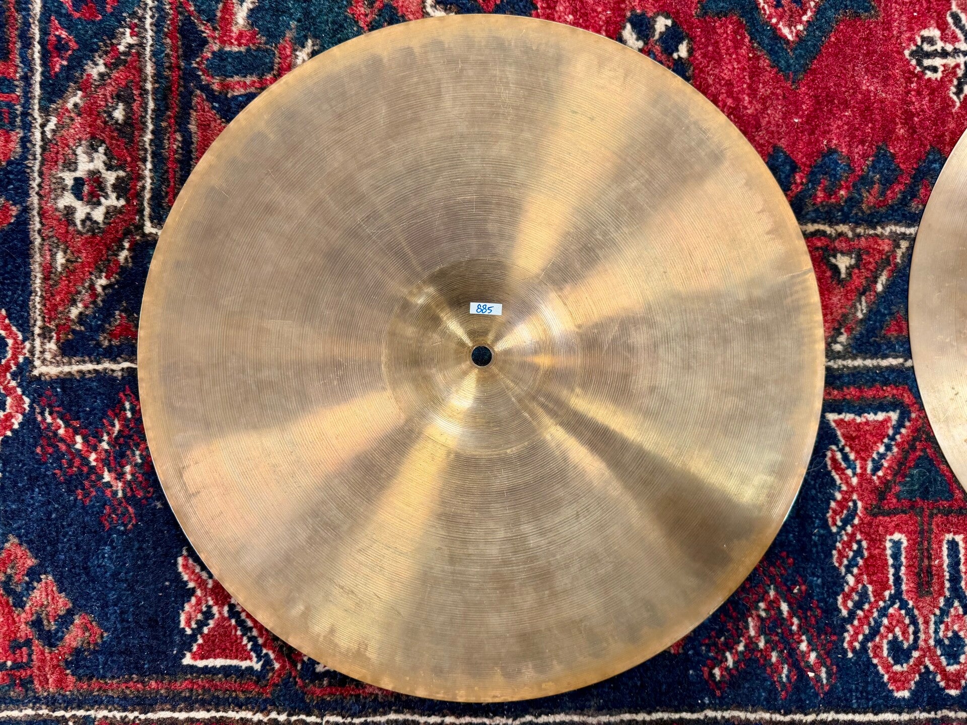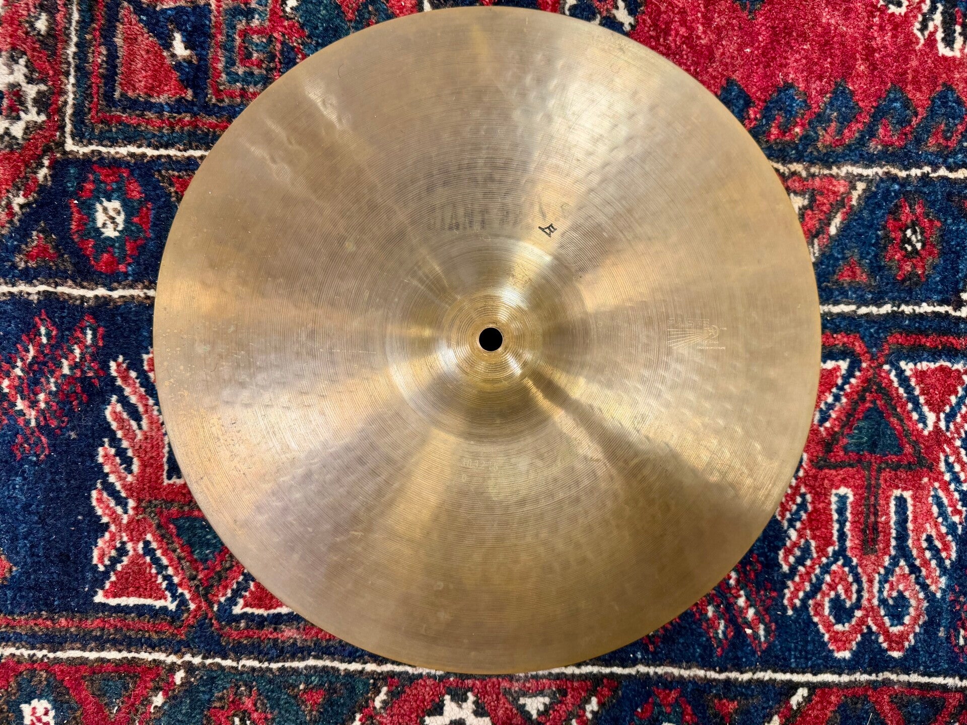 This 15" Paiste Giant Beat hihat from 1973 is definitely one of the best vintage Paiste hihats I've ever played! Like the white label Giant Beat hihats, this pair has both a light top and bottom (later the bottoms became in the 1200 range mostly). These are both very thin at a weight of 885 grams (top) and 960 grams (bottom). It has everything you want from this pair; typical Paiste Giant Beat sound and articulation, responsiveness both when played closed and half-open, dynamic range (which makes it a suitable pair for almost all genres), etc.