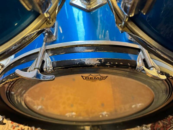 As shown in the pictures, the kit is in used condition showing some battle scars here and there, but the edges are super clean. What makes it extra special is that the original heads are still on all the toms. Only head that has been swapped for a new one, is the beater side head on the bassdrum.