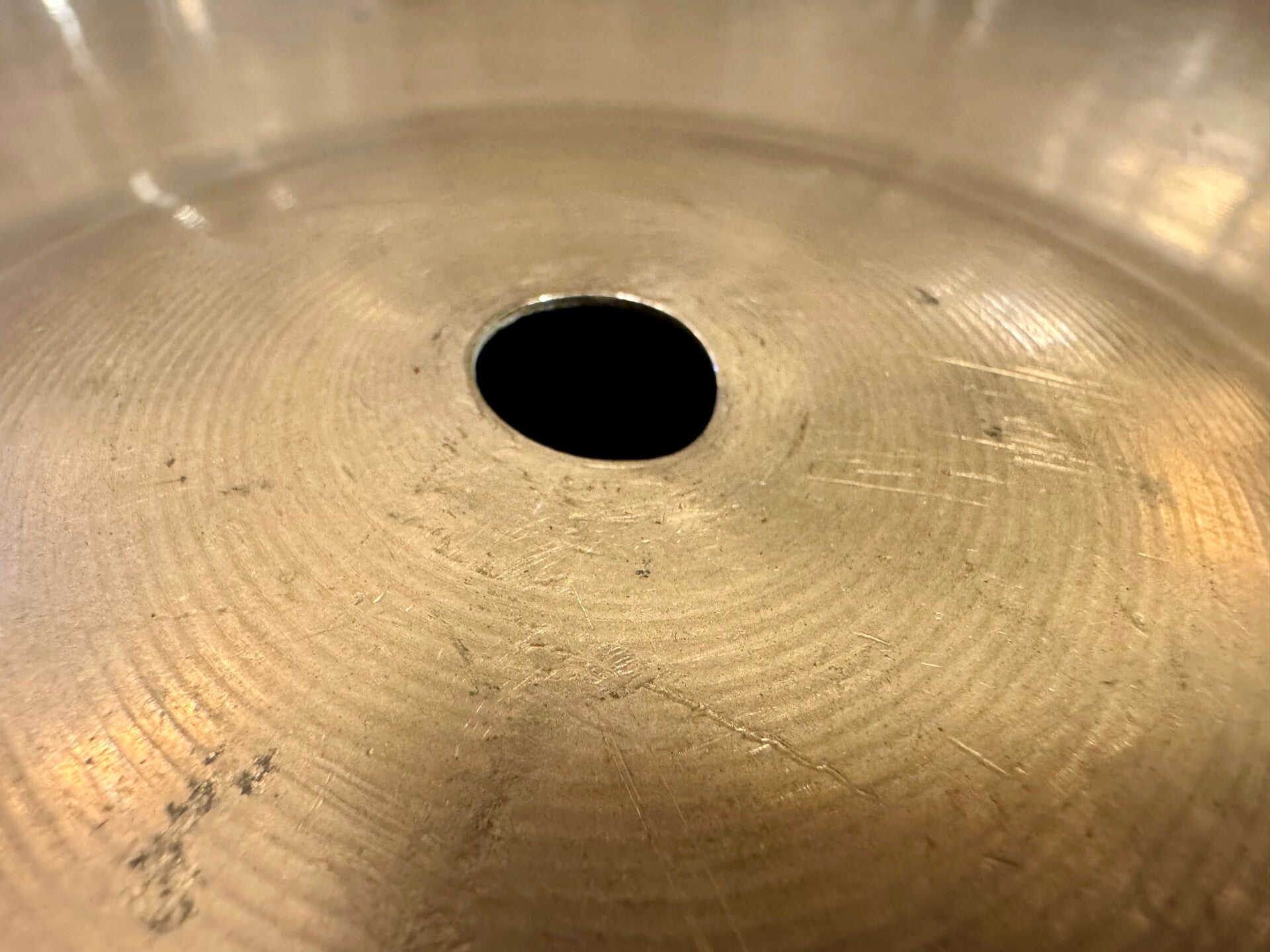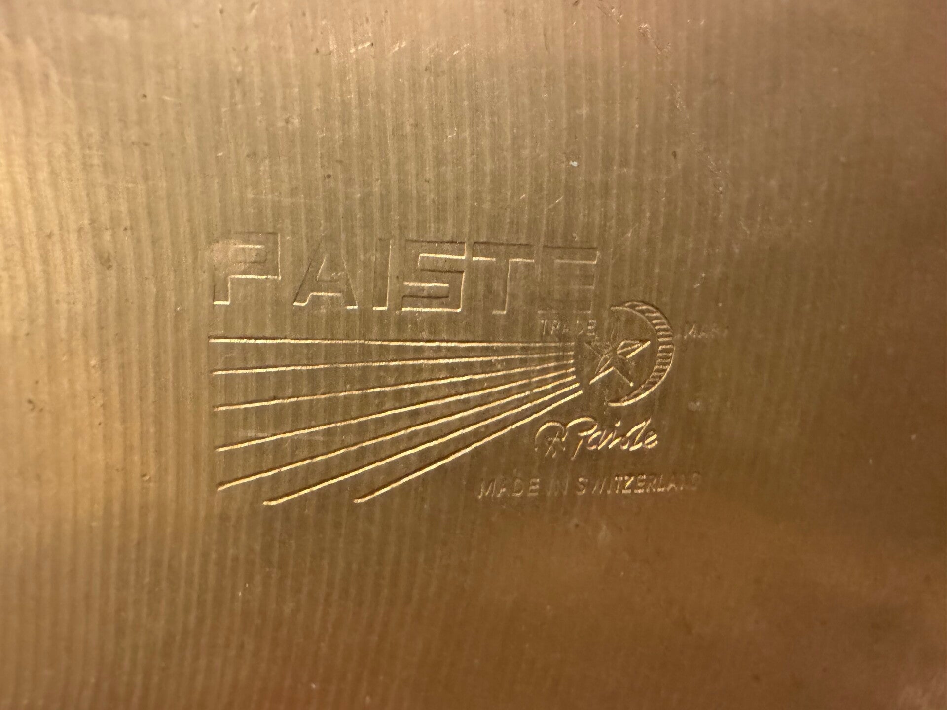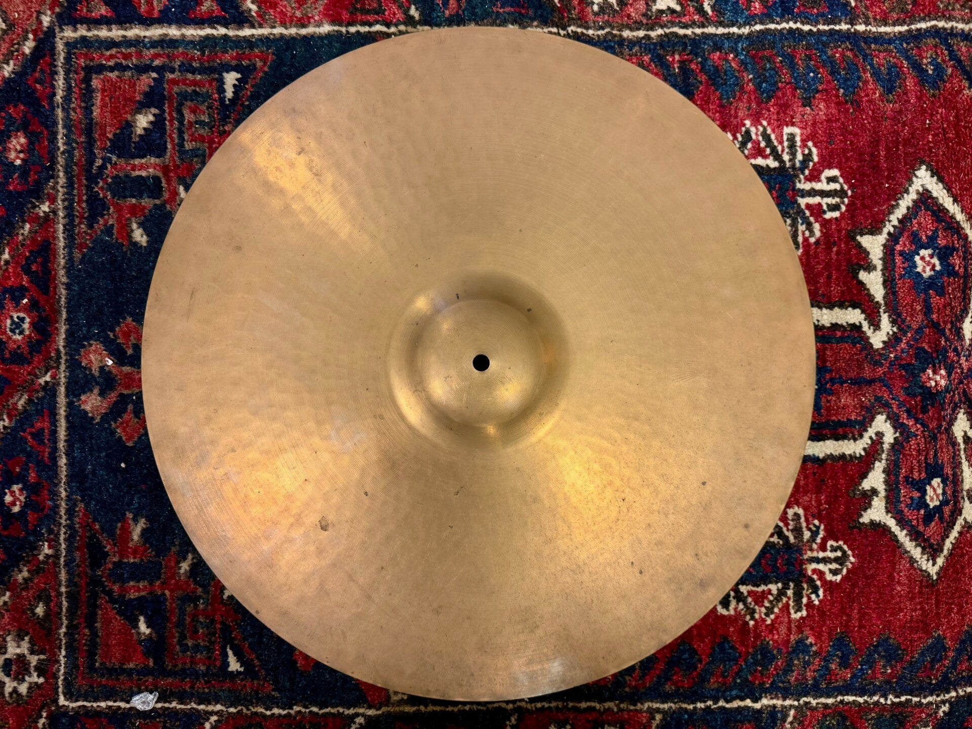 Fantastic 20" Paiste Giant Beat Multi Purpose cymbal from 1973 at a lovely weight of only 1815 grams. Overall the cymbal is in very good condition. The center hole is a little warped, which is a common problem with thin B8 cymbals like this unfortunately. For the rest, the cymbal is without cracks or anything.