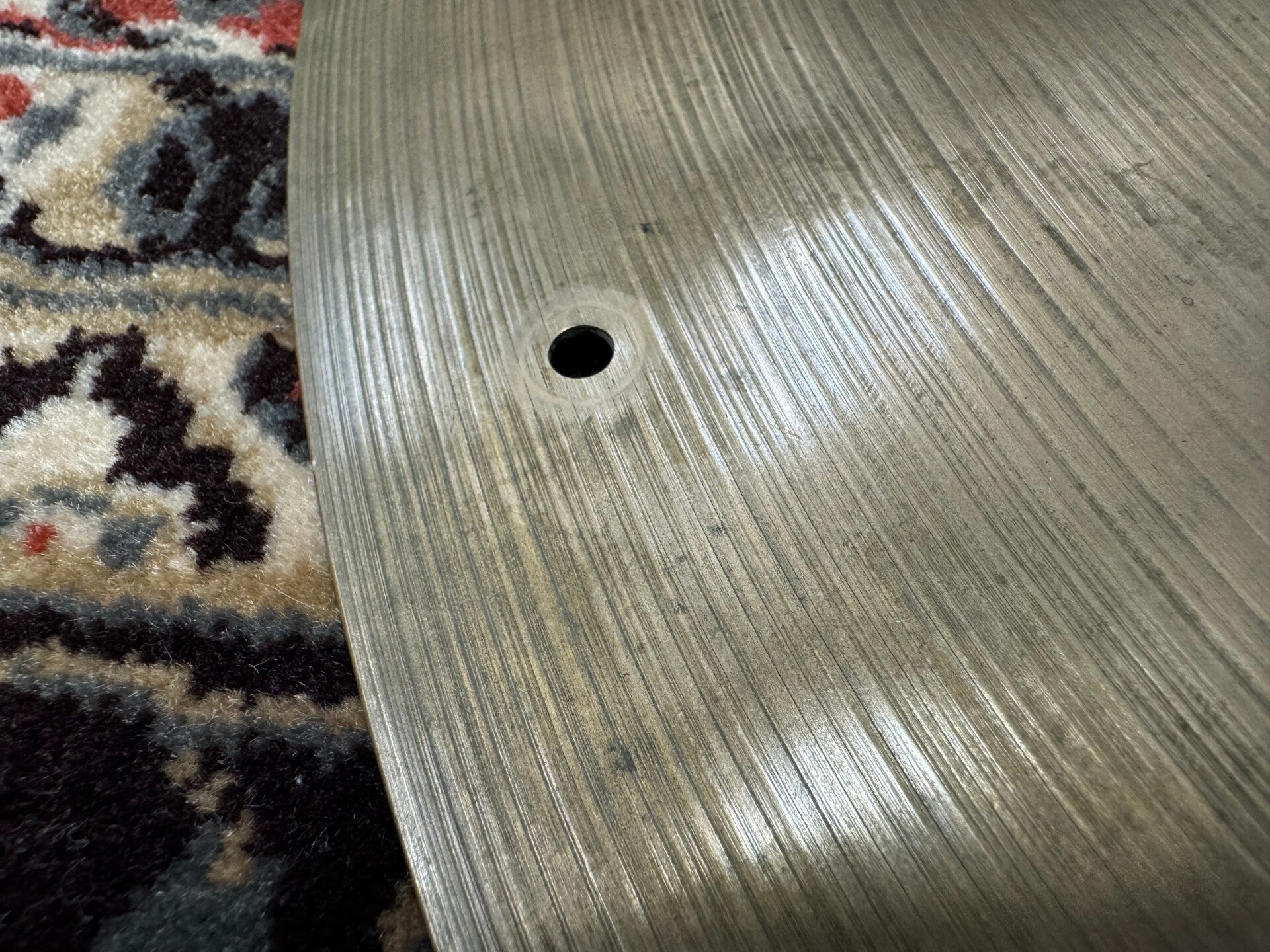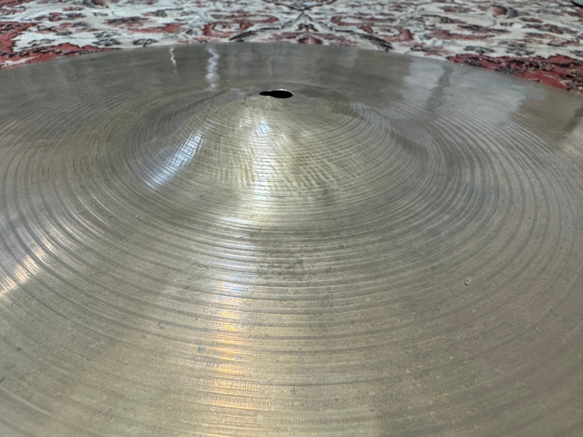 This 22" K. Zildjian (Istanbul) Intermediate Stamp Ride is a perfect example of how weight can tell us a lot, but doesn't say anything at the same time. If you'd judge this cymbal purely on its weight, begin 3020 grams, you'd probably say it's too heavy and let it be. But already after that first touch, you can see at the wobble of the cymbal that there's a whole lot more to it than just the weight. Some old K's can be a bit stiff and 'clonky' because of it. This one is the exact opposite of that. It's really loose, sings beautiful with great semi bright stick definition, nice bell and even a great crash, which doesn't have the never ending sustain you'd expect.