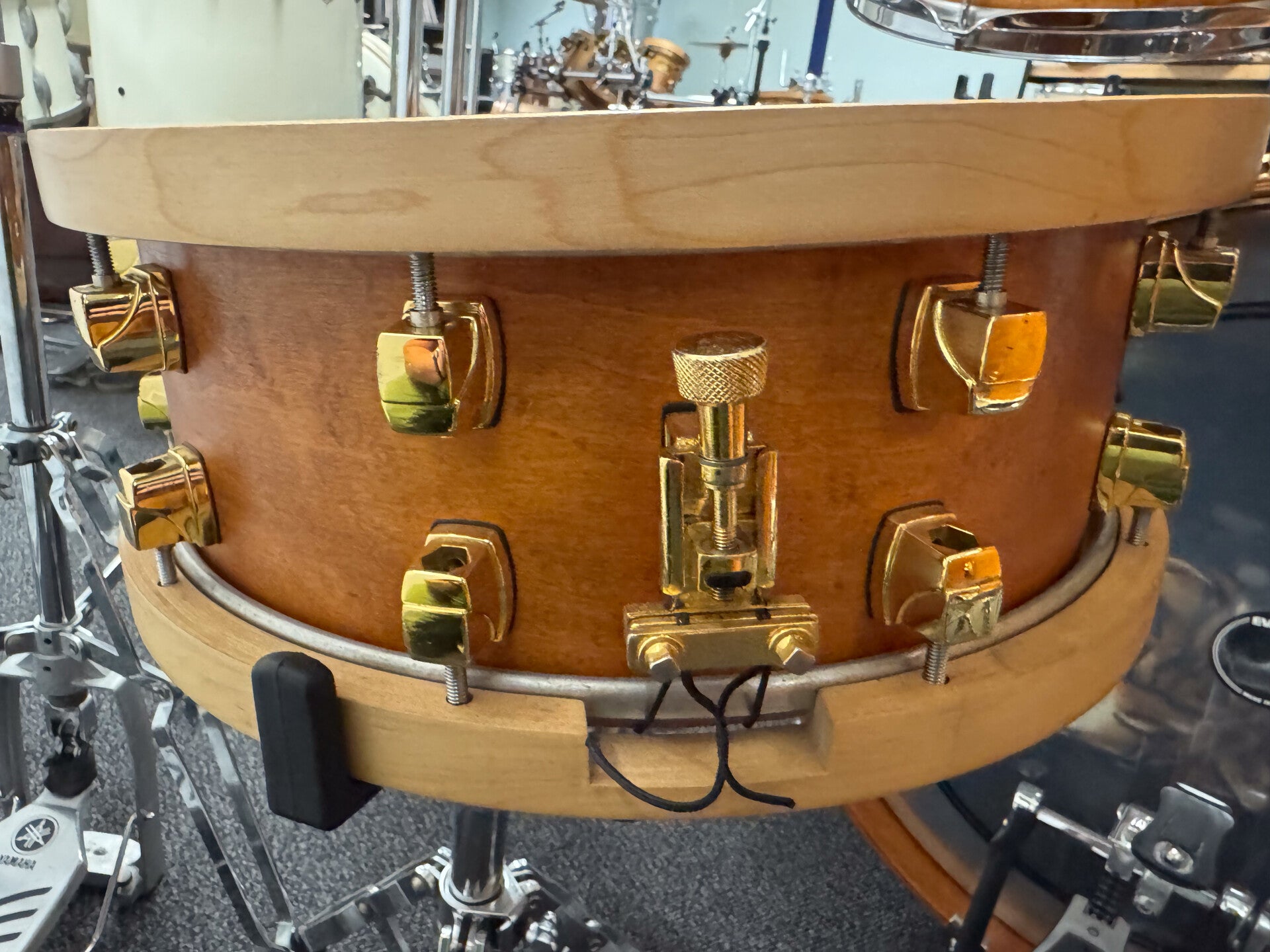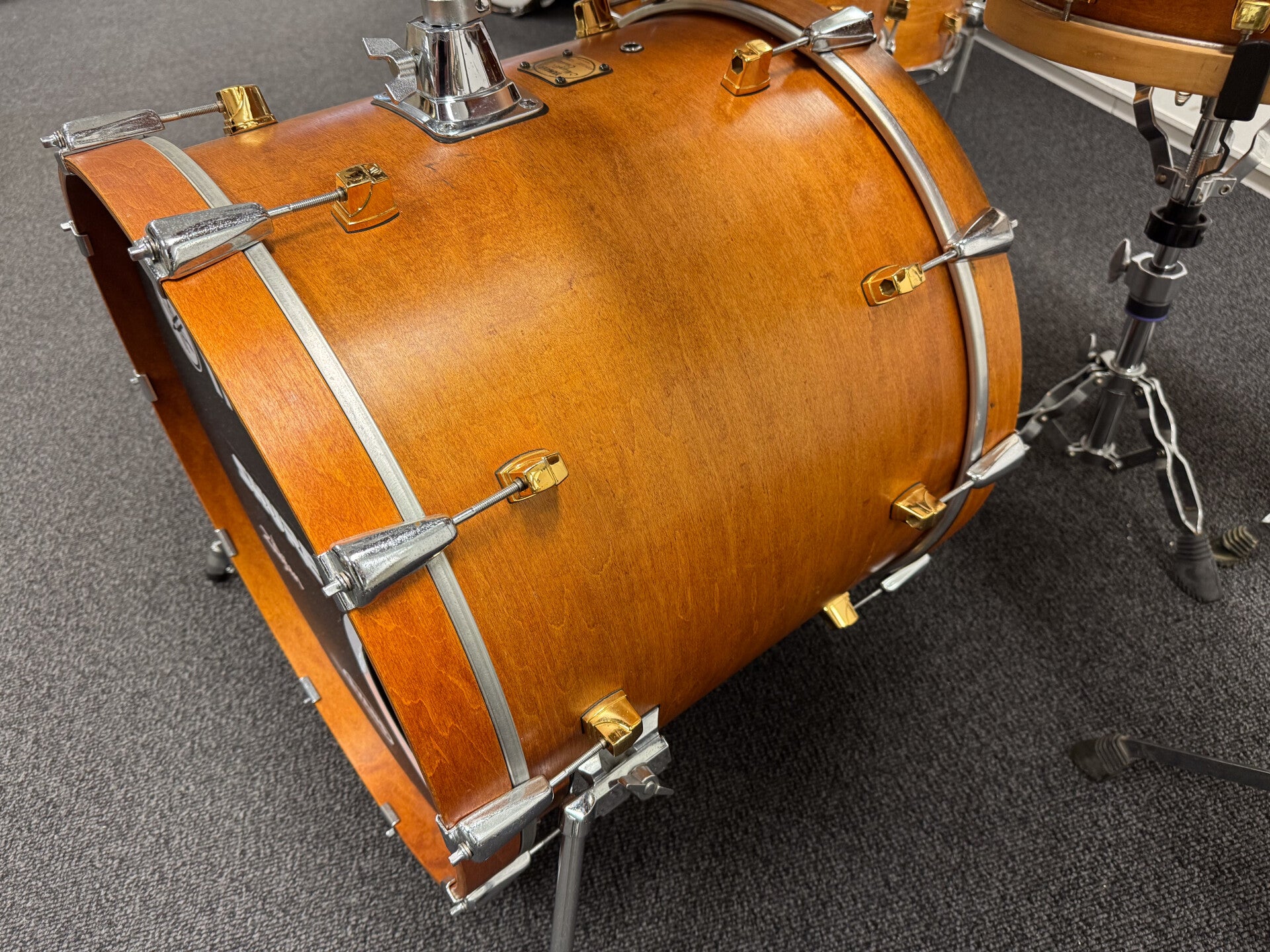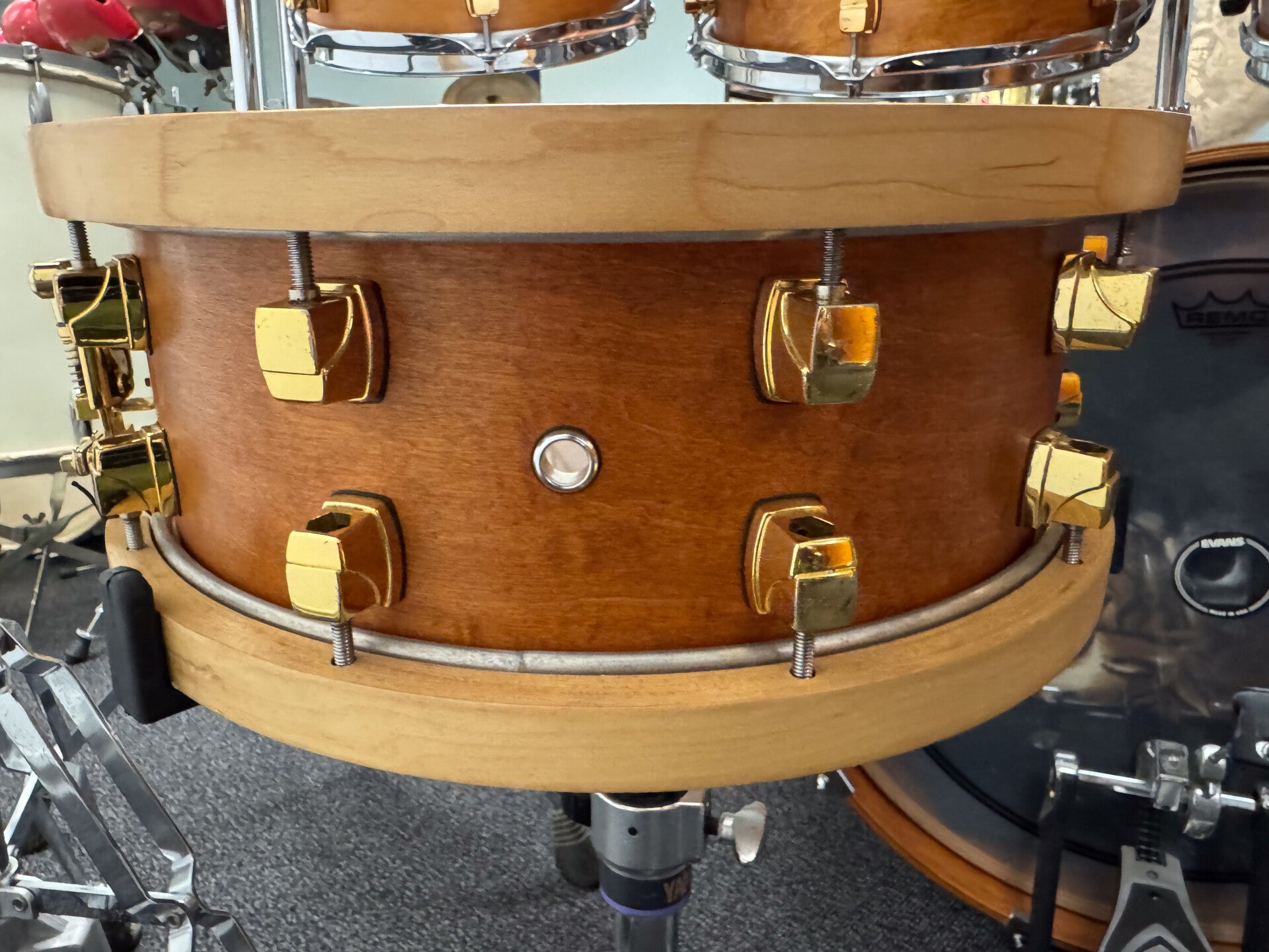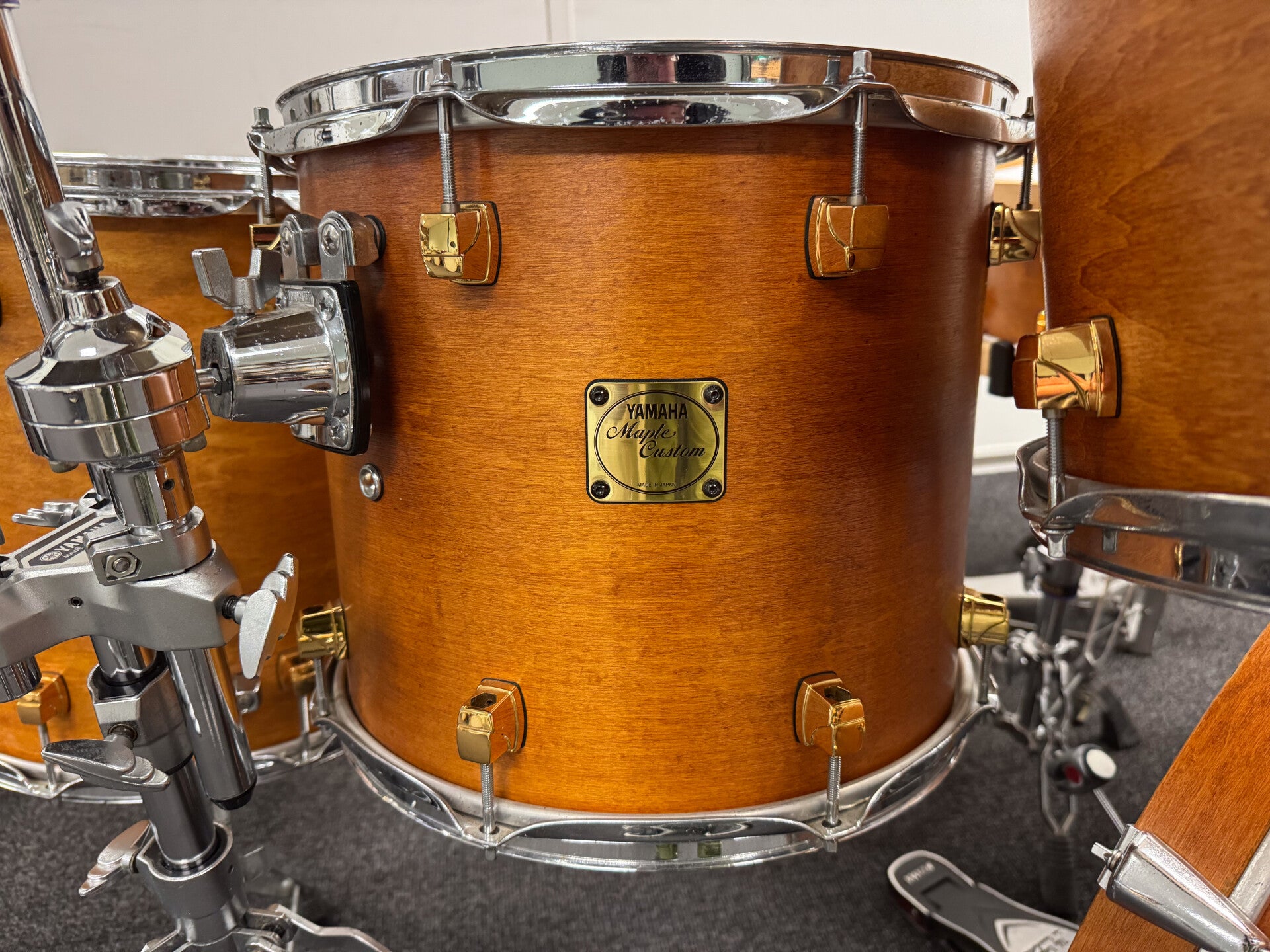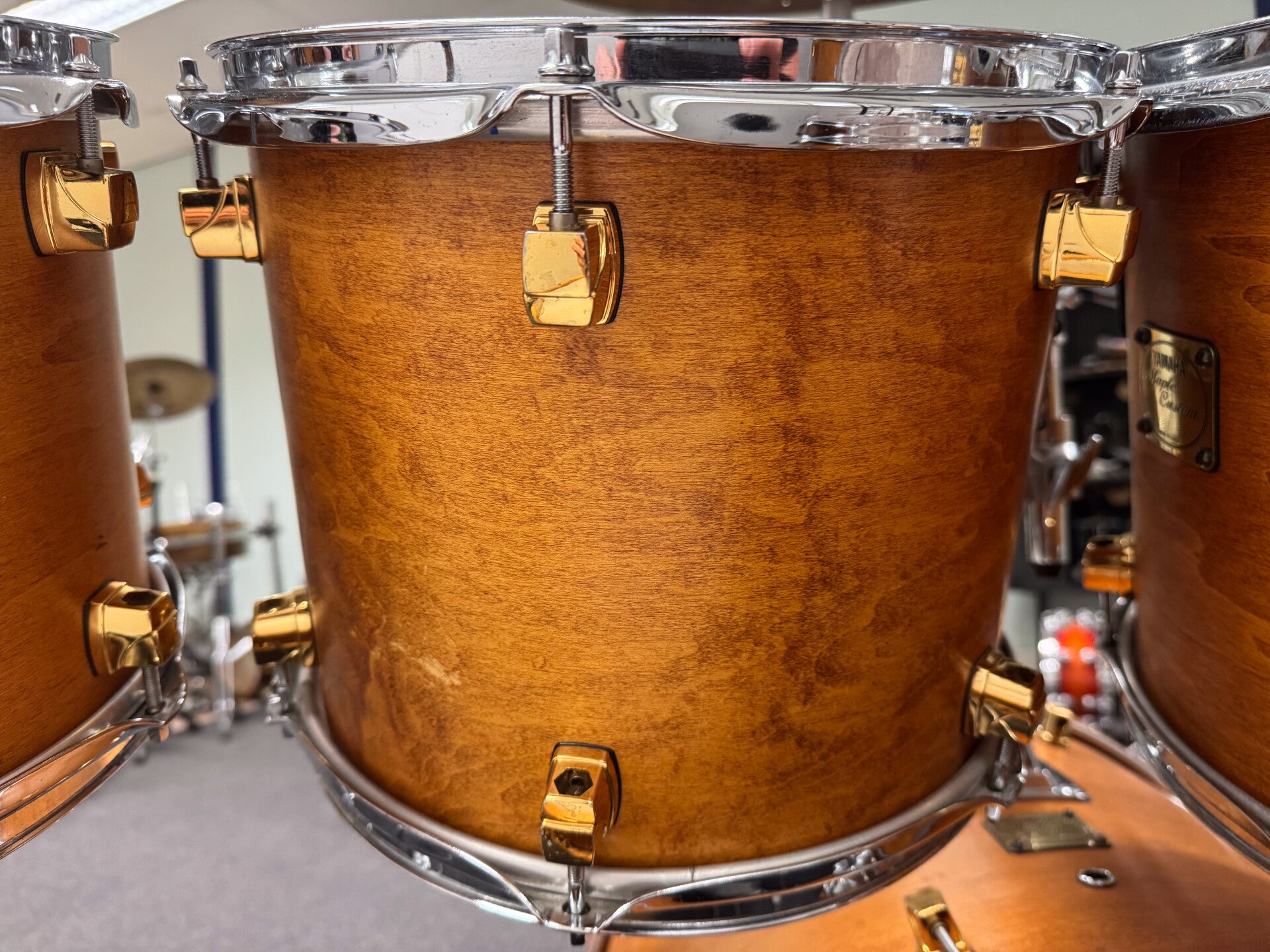 Yamaha Maple Custom in Vintage Natural Stain. Beautiful kit that is as versatile as they can get. Rich full body and warm sounding set with a wide tuning range for all the drums.