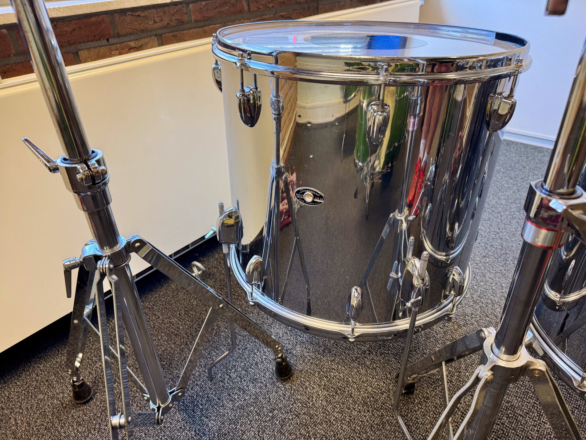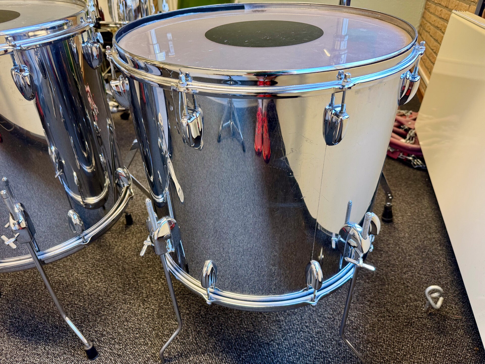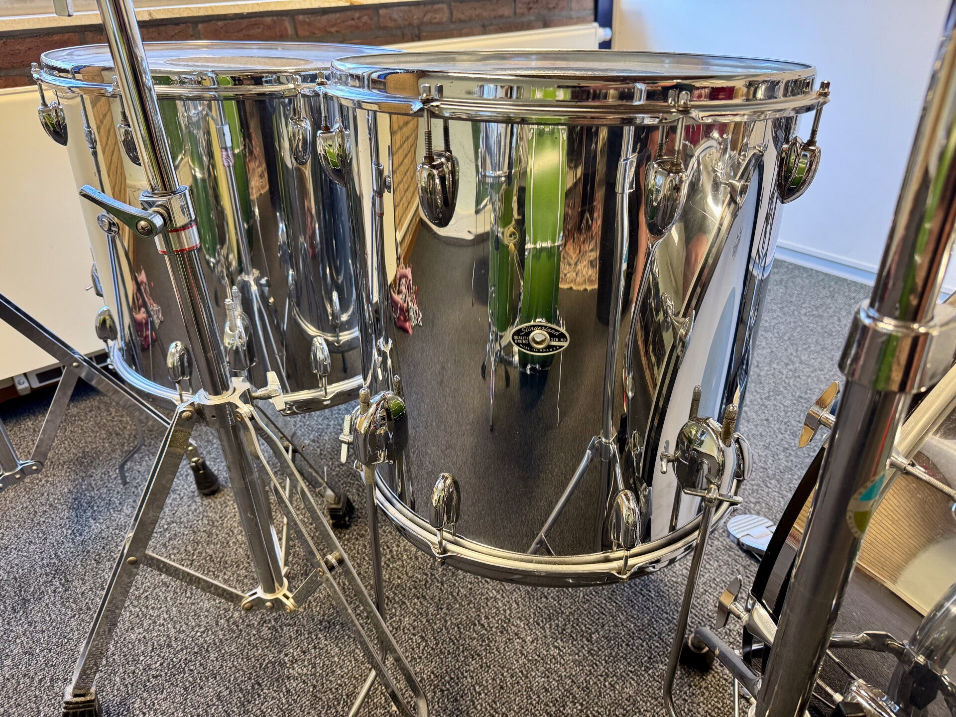 The original kit only had the 18" floortom. We added the 16" floortom coming from another kit to the setup, to make it a more complete kit that also plays more balanced (the gap between 13" and 18" could be too big in tuning range).