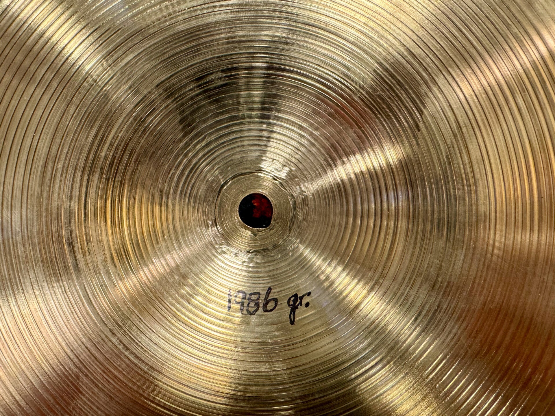 A great 20" A. Zildjian from the 60s that has been on a bit of a diet by doing some lathing on the bottom side of the cymbal. The new weight of the cymbal is now 1986 grams, making it a perfect crash-ride that fit's in many genres! It opens up really nice and bright with a trans stamp kind of shimmering and glassy sound to it. A bright, semi woody stick definition and dynamic crash to it.