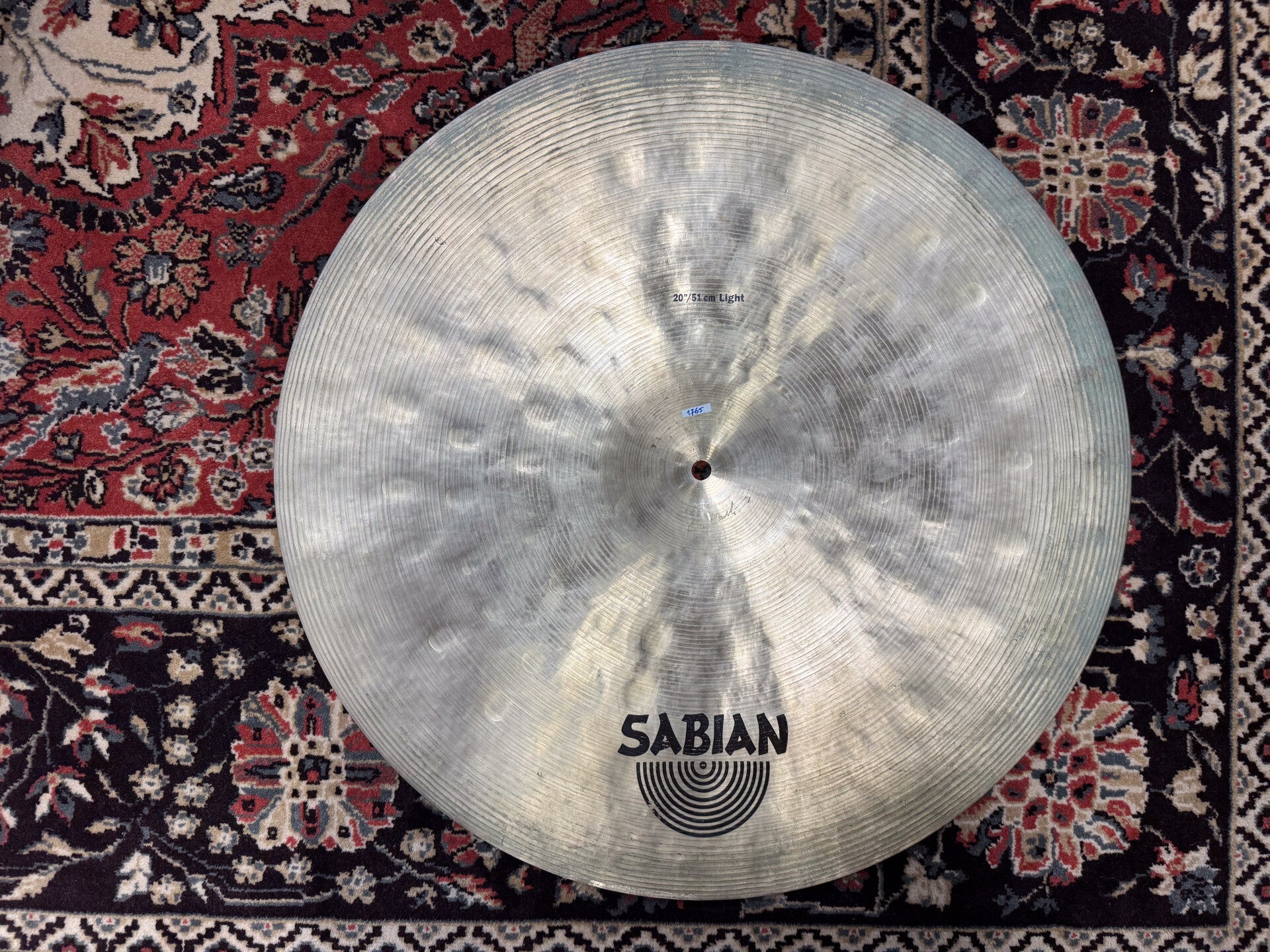 This is a first generation 20" Sabian Artisan Vault Light at a weight of 1765 grams. For me, this cymbal is just perfect. It is light and controlled enough to use it for jazz, but also amazing as a bigger crash (which is how I mainly used it over the past couple of years). Due to the type and amount of hammering it has some complexity, but in a relatively subtle way.