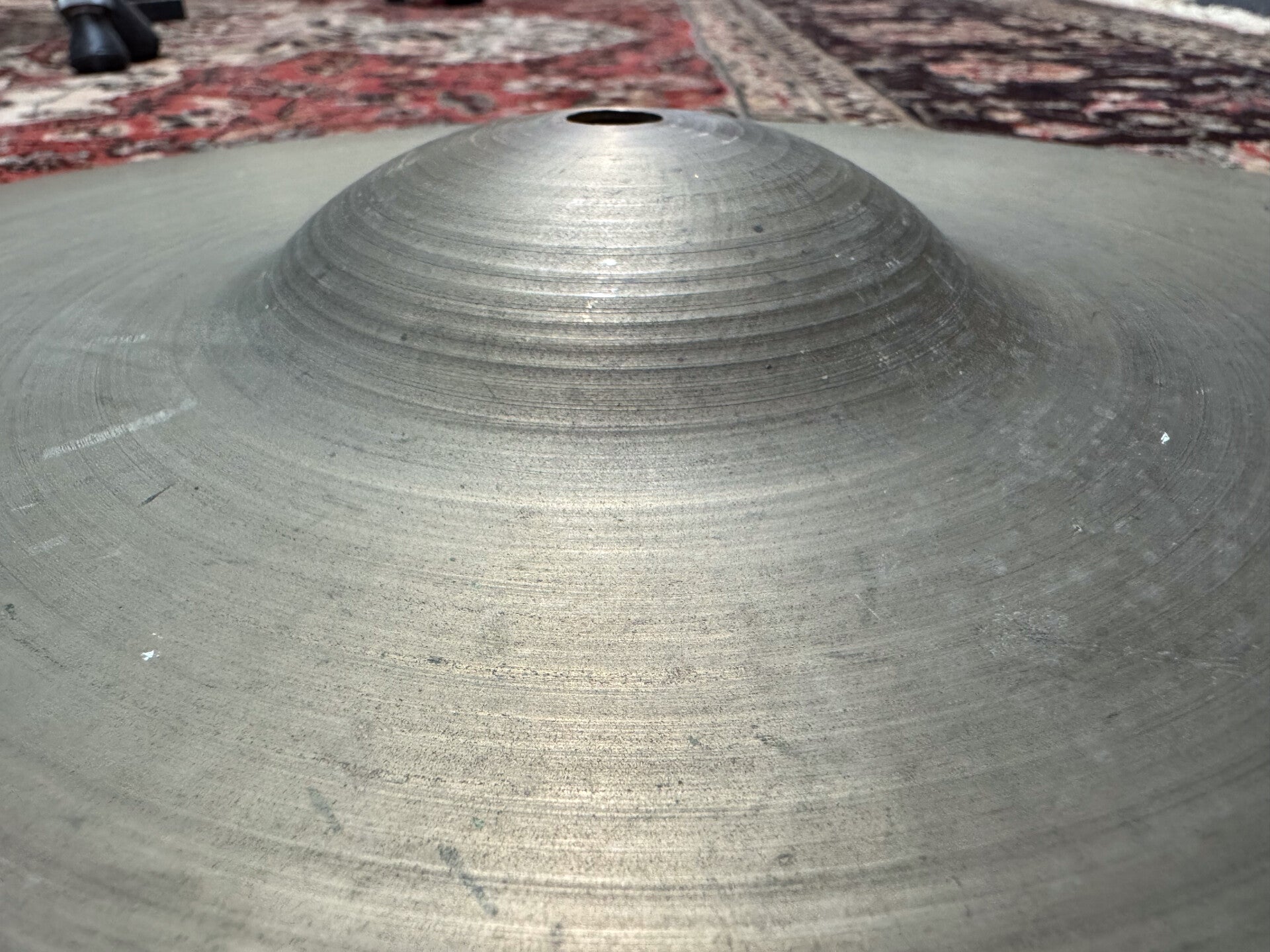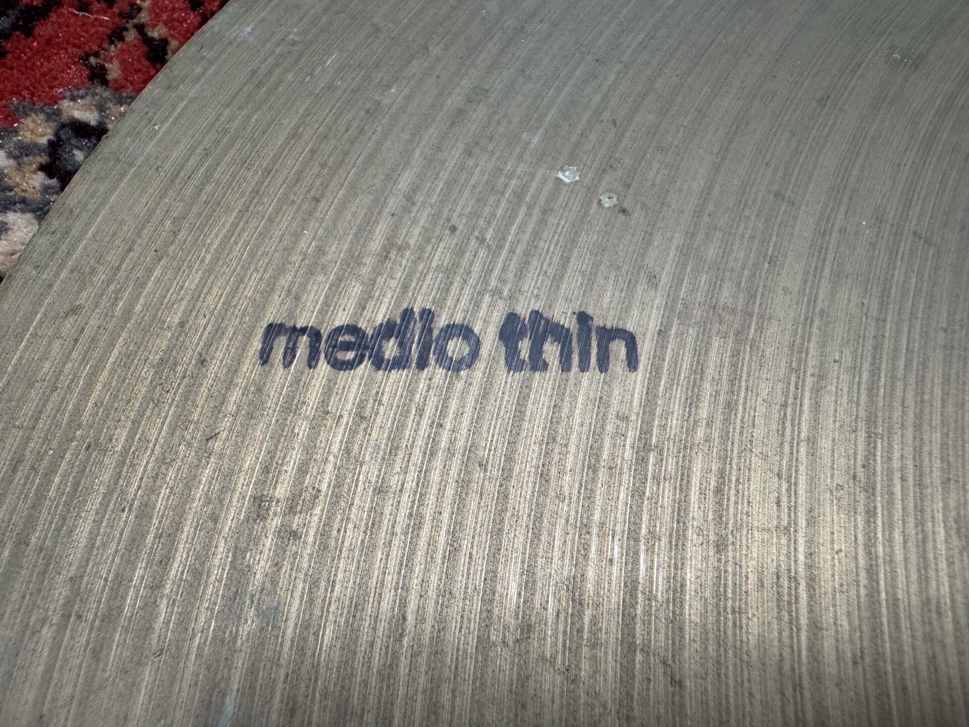 Pretty rare 20" UFIP Medio Thin "Jazz" Ride. Most interesting about this cymbal is its bell. It's is small, high and round, giving both the bell and the rest of the cymbal a very typical high bright ring.