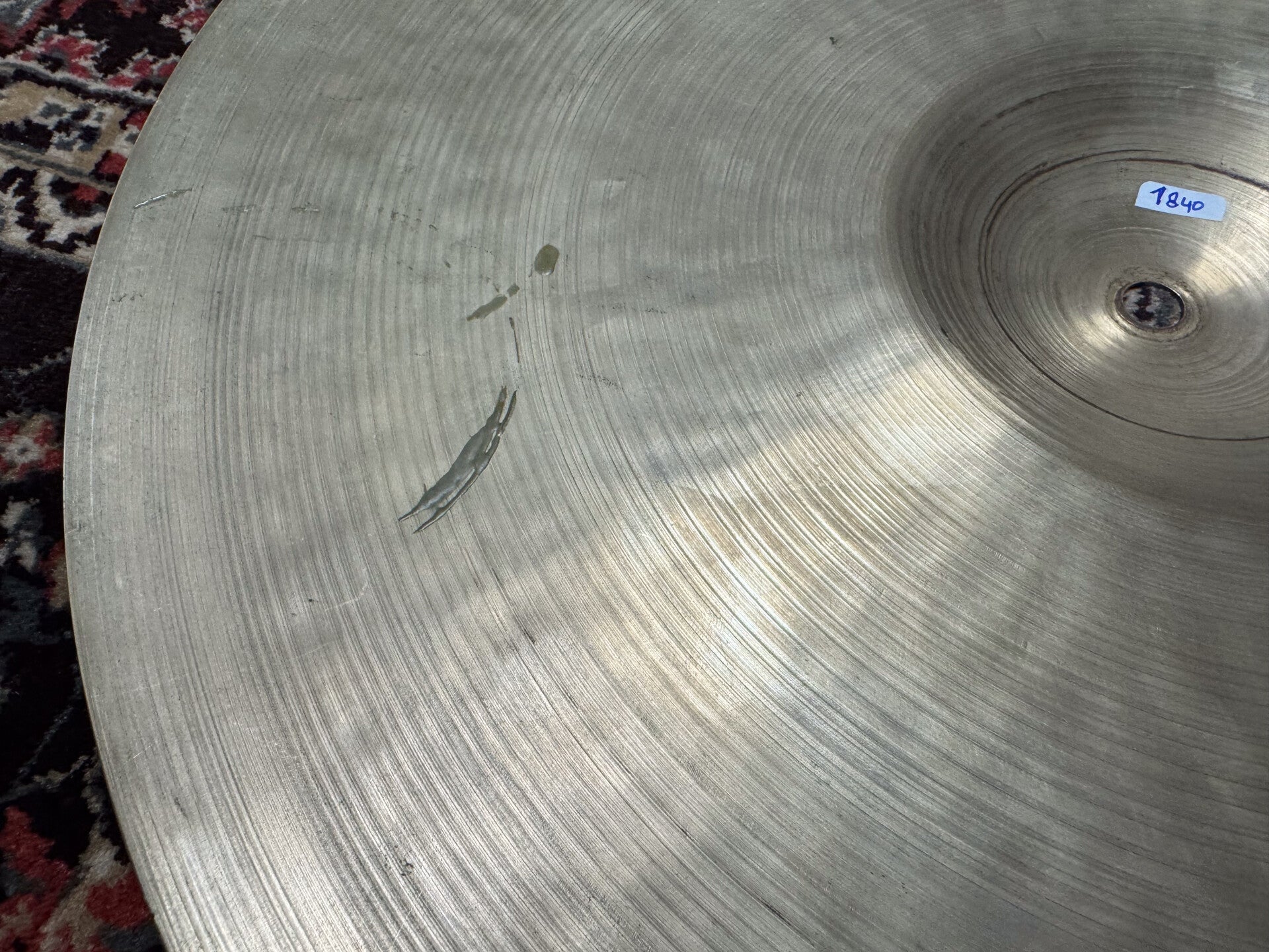 18" Zildjian Avedis Ride from the late 1950s wit the "small stamp" logo. With a weight of 1840 grams, it's on the heavy side for an 18" and normally I tend not to like those, but this one is for sure a big exception! I absolutely love this one and would easily swap it for a 20" as a main ride. It's bright, rich of tones, well balanced, has a strong bell and even has a proper crash for the bigger hits.