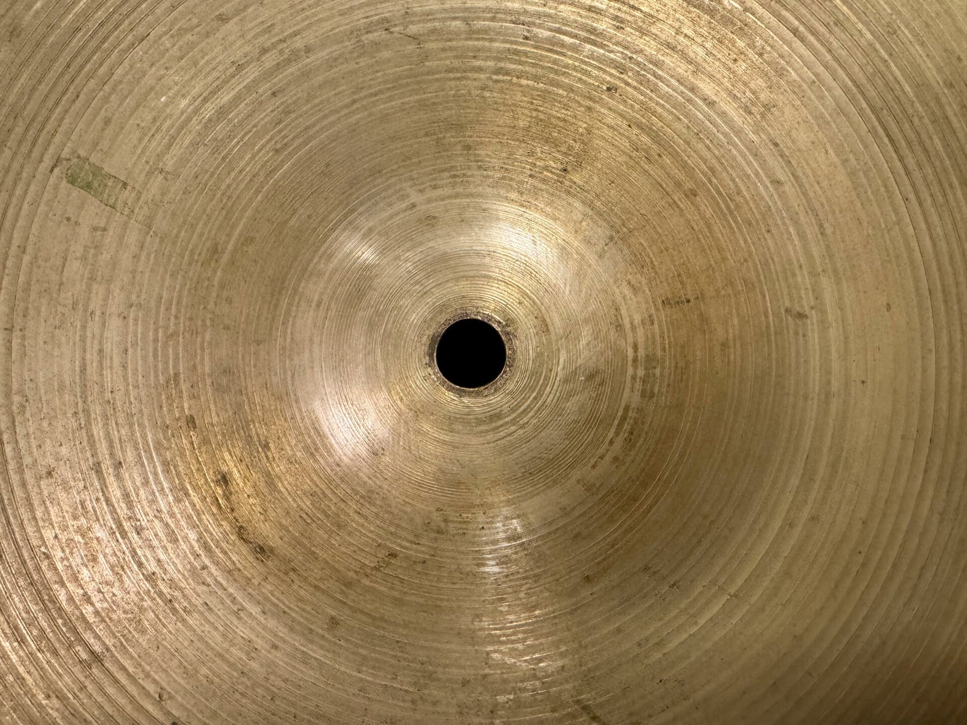 Wonderful 20" Zildjian Avedis Sizzle Ride from the mid 1950s (Large Stamp '54-'57) at a weight of 2312 grams. It definitely sounds and plays a whole lot lighter than that though! It has a great dark warm crash sound when you shoulder it and at the same time that typically 50s Avedis bright and woody stick definition. It has 12 rivets in total, which may seem a lot, but they are all pretty small and light, so it doesn't harm the length of th decay as much as you'd think.