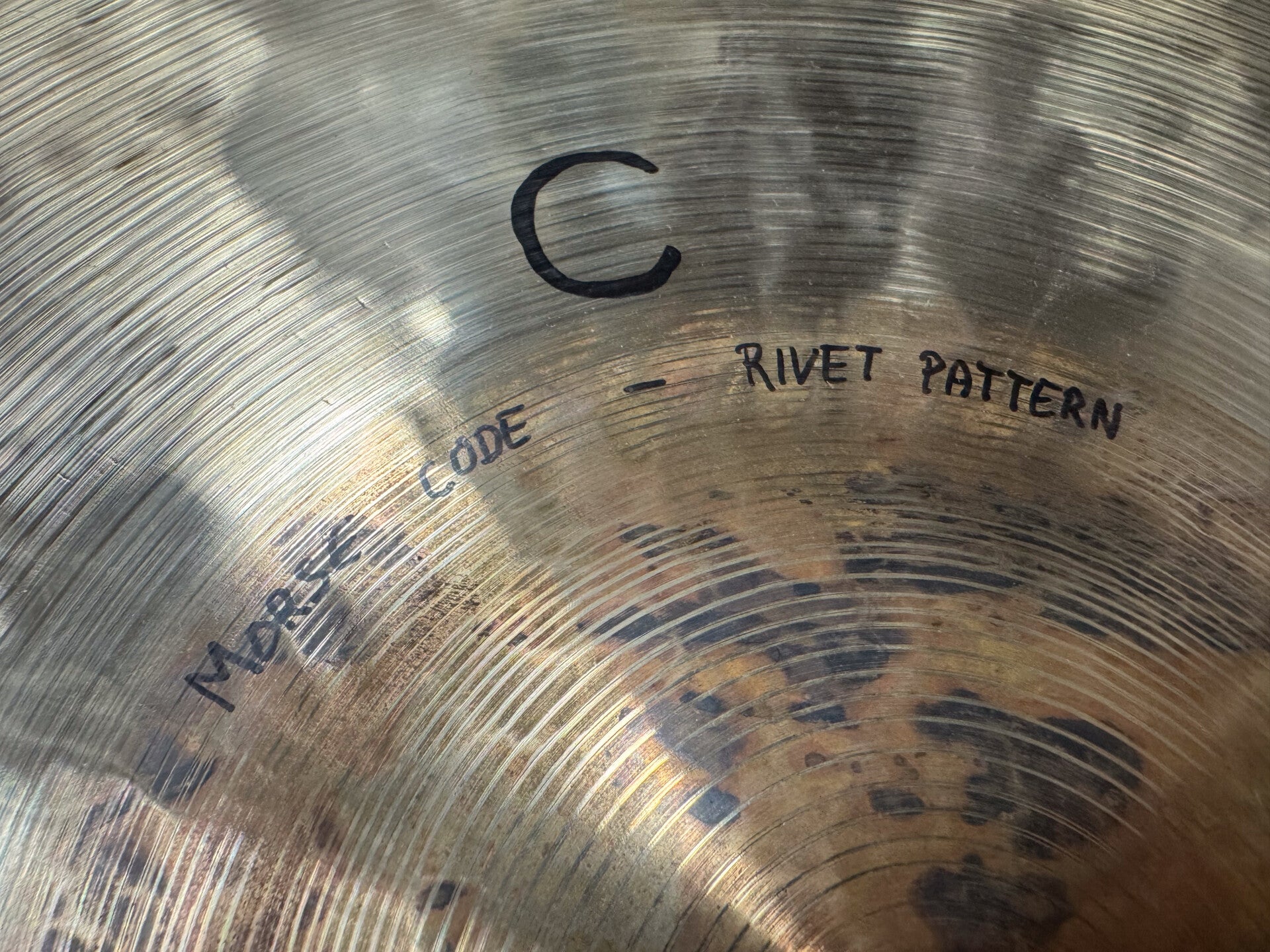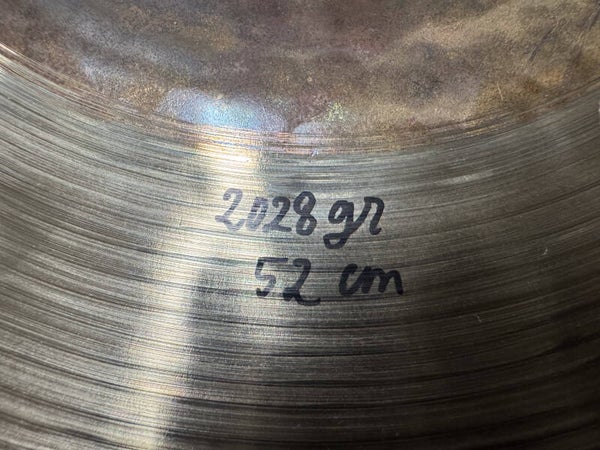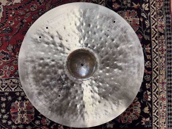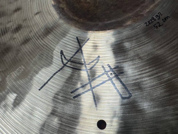 Brand new 20" (and a bit; 52cm) belcymbal boutique sizzle ride, named "Morse Code Buzzing Honey" coming in at a weijght of 2028 grams. It really does justice to it's name. It has a very sweet (honey) touch and tone with a very well balanced complexity. It's super rich without becoming a difficult cymbal to play. Easy to fit in any cymbal setup as well!