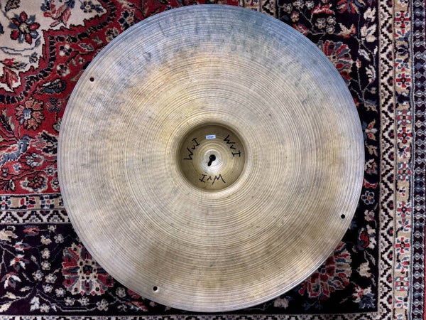 22" Zildjian Avedis mid '50s Large/Block Stamp Ride at a weight of 2540 grams and with a great amount of patina. It sounds as good as it looks! It has a nice low pitch, great stick definition with a smokey and wooden touch without loosing that Avedis brightness. You can hear it's a 50s Avedis when you compare it with a 60s or later A. It has way more character, is less "clean" and has some of that almost K-like complexity in it without becoming too much of that. And look at that wobble!!!!