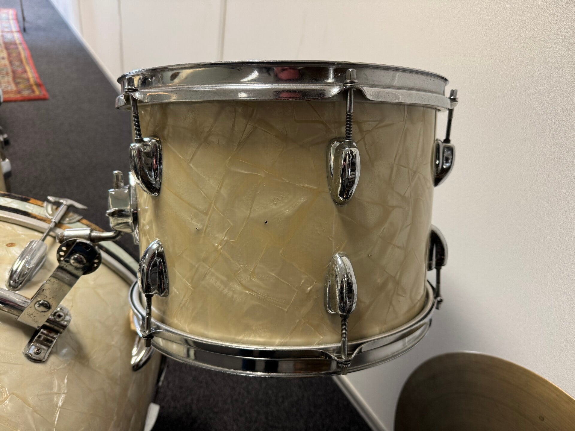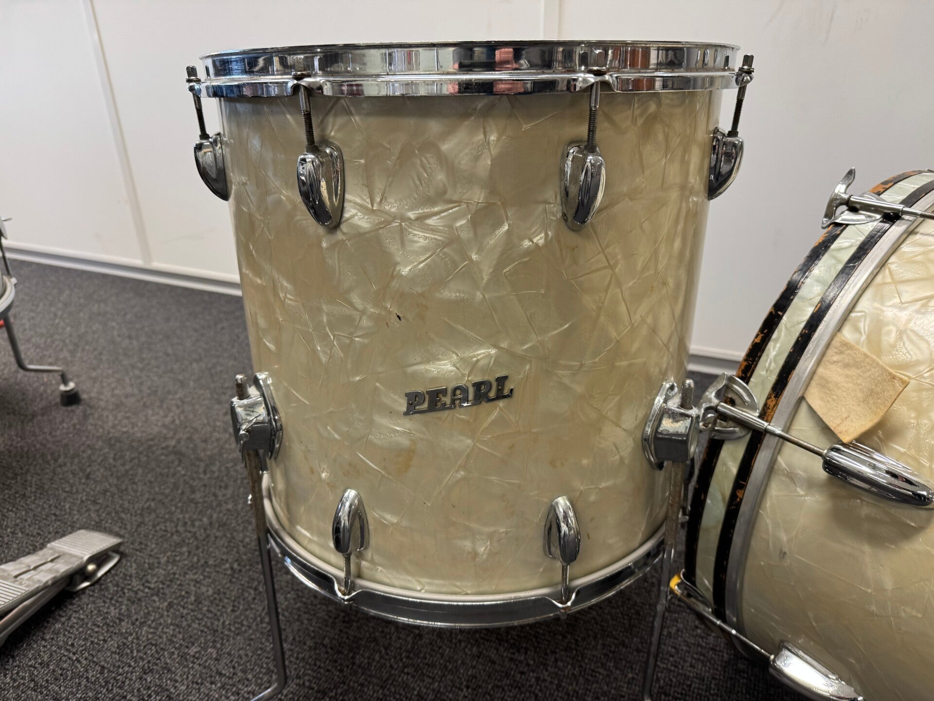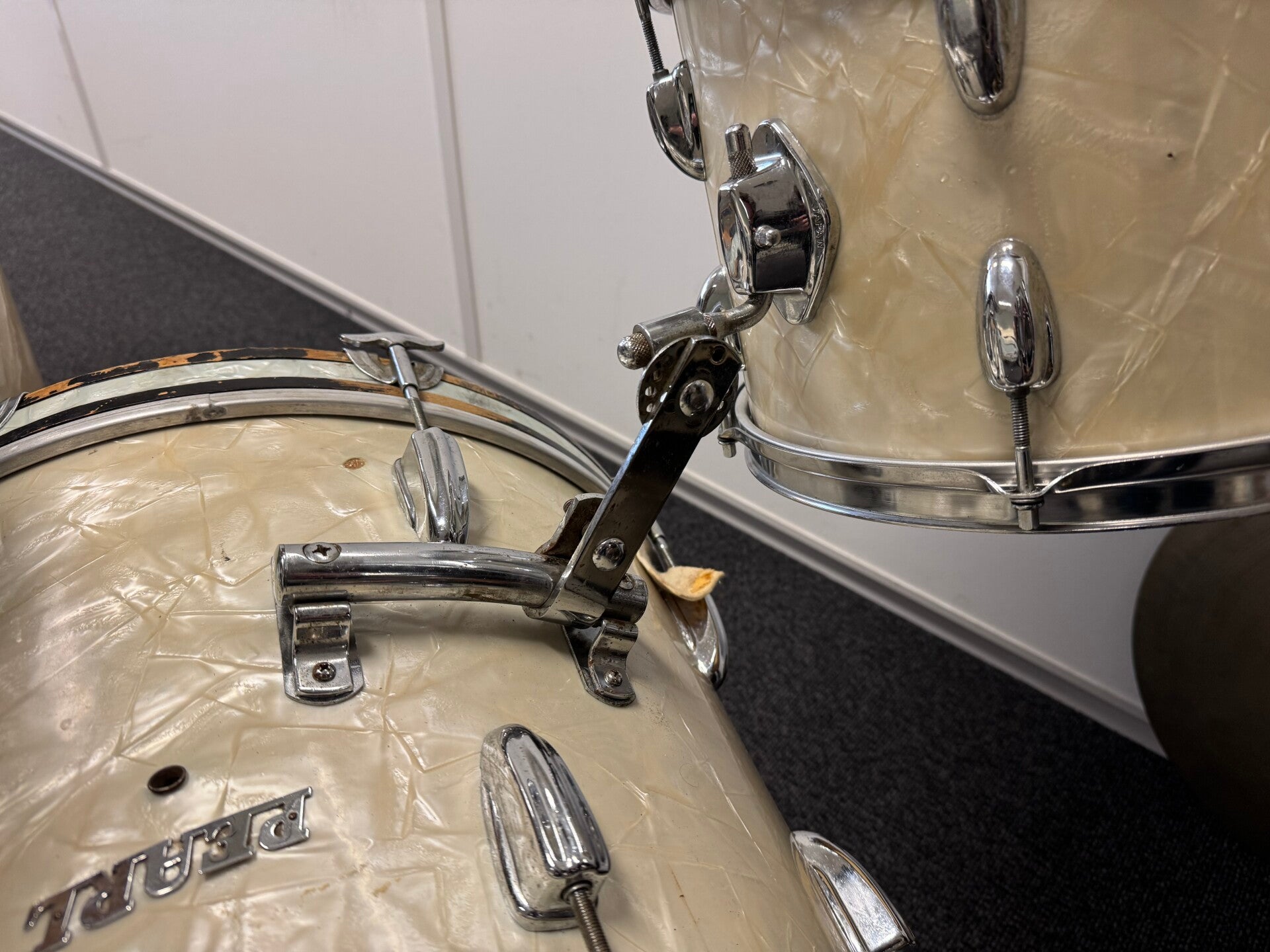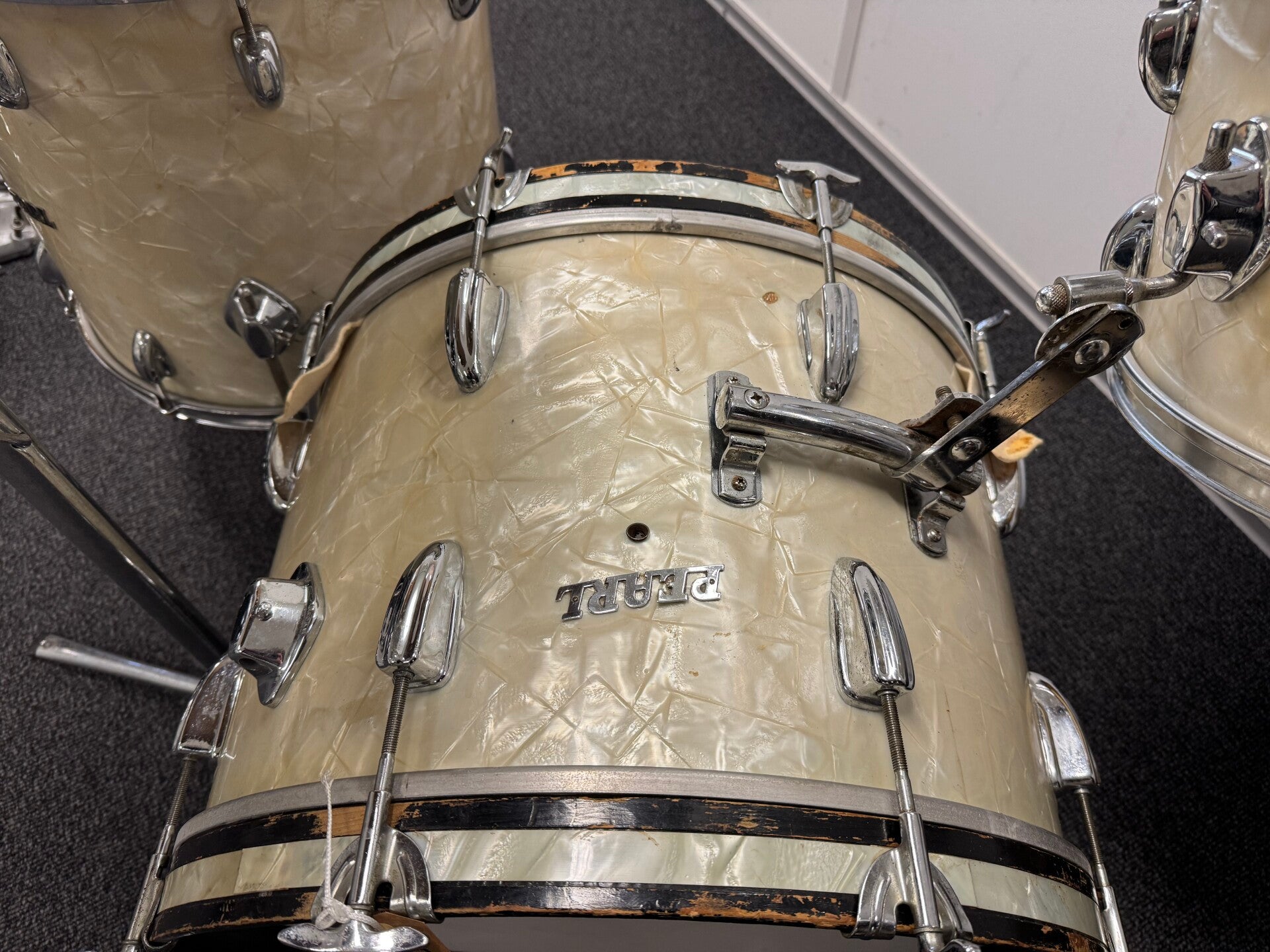 The original Pearl President from the 1960s for just a fraction of the price of what the remake would cost! Amazing sounding set that can be tuned up like jazz kit, or tuned low with thick heads to have that retro pop sound. The kit obviously shows some wear and tear, it's missing the badge on the 13" tom but for the rest it's still an amazing kit to play!