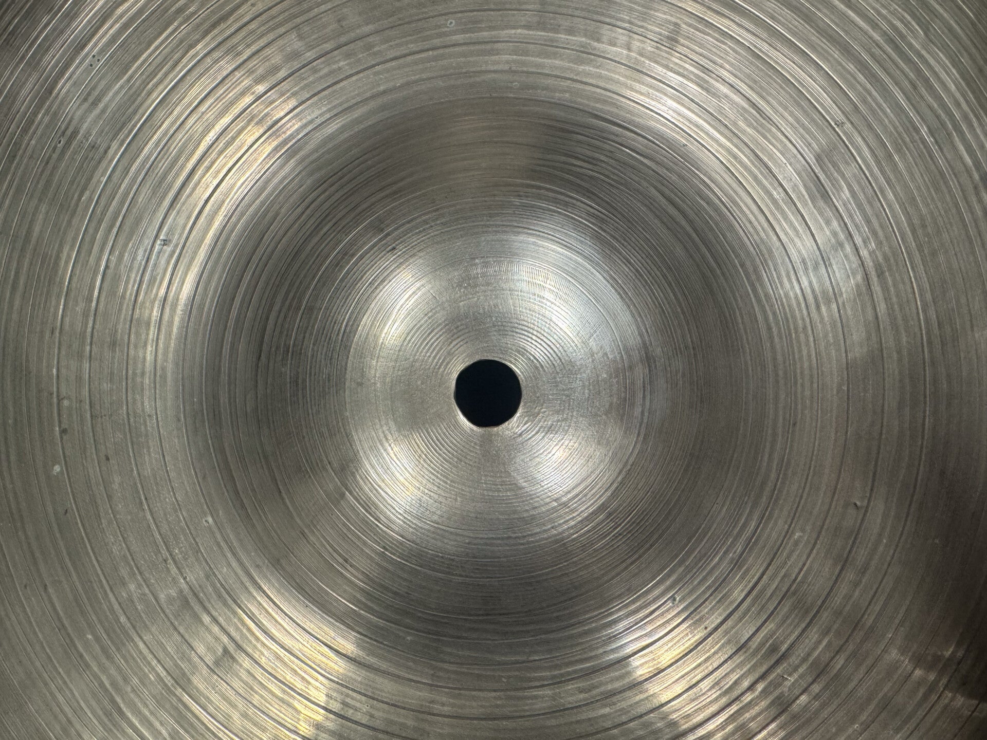 The center hole has been drilled into a bigger hole, either to fix some hairline cracks in the center hole, or to make sure it fit's all modern stands. It's a bit wide now for most stands, but at least now that's one less thing to worry about.