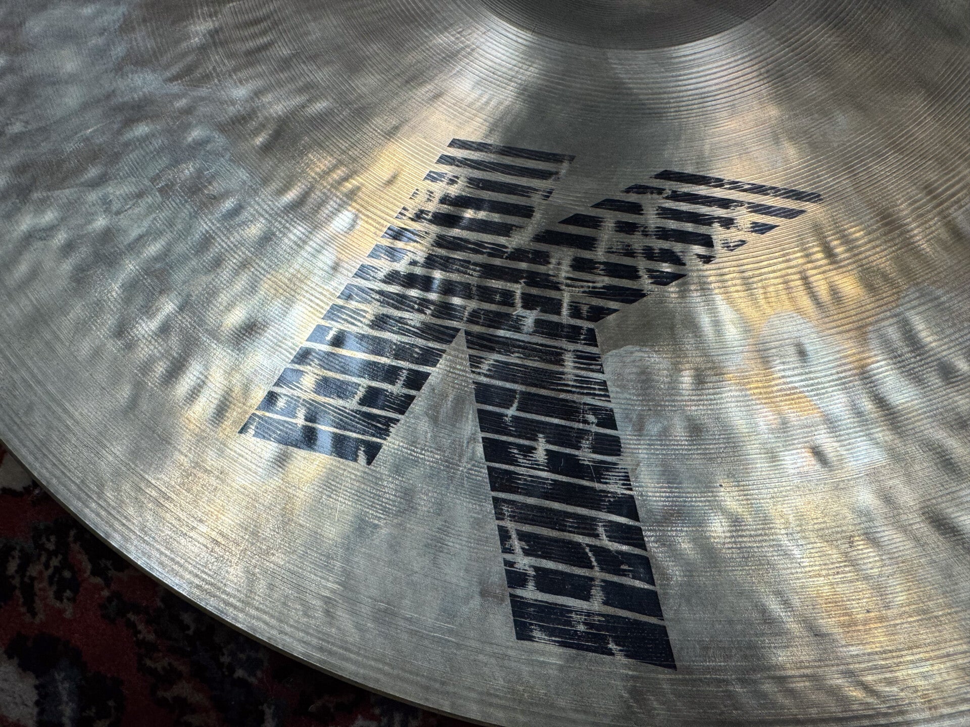 Beautiful 22” Zildjian EAK Ride at a weight of 3265 grams. Very well balanced cymbal with a nice low dark tone but with an articulated bright stick definition, making it a very rich cymbal that is super versatile in usage (See video!).