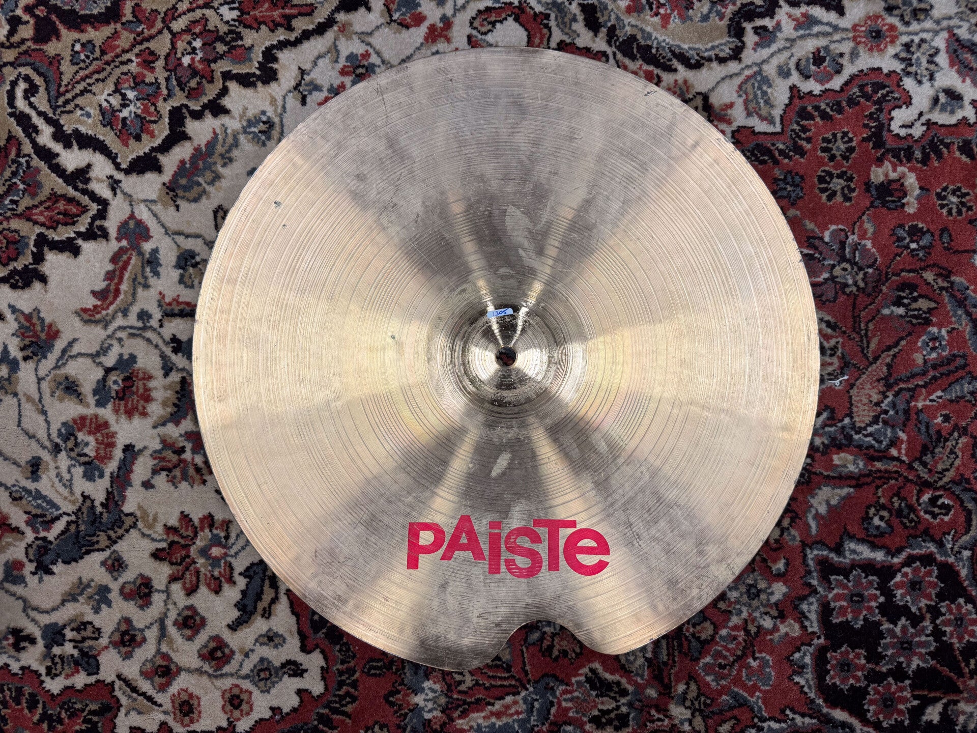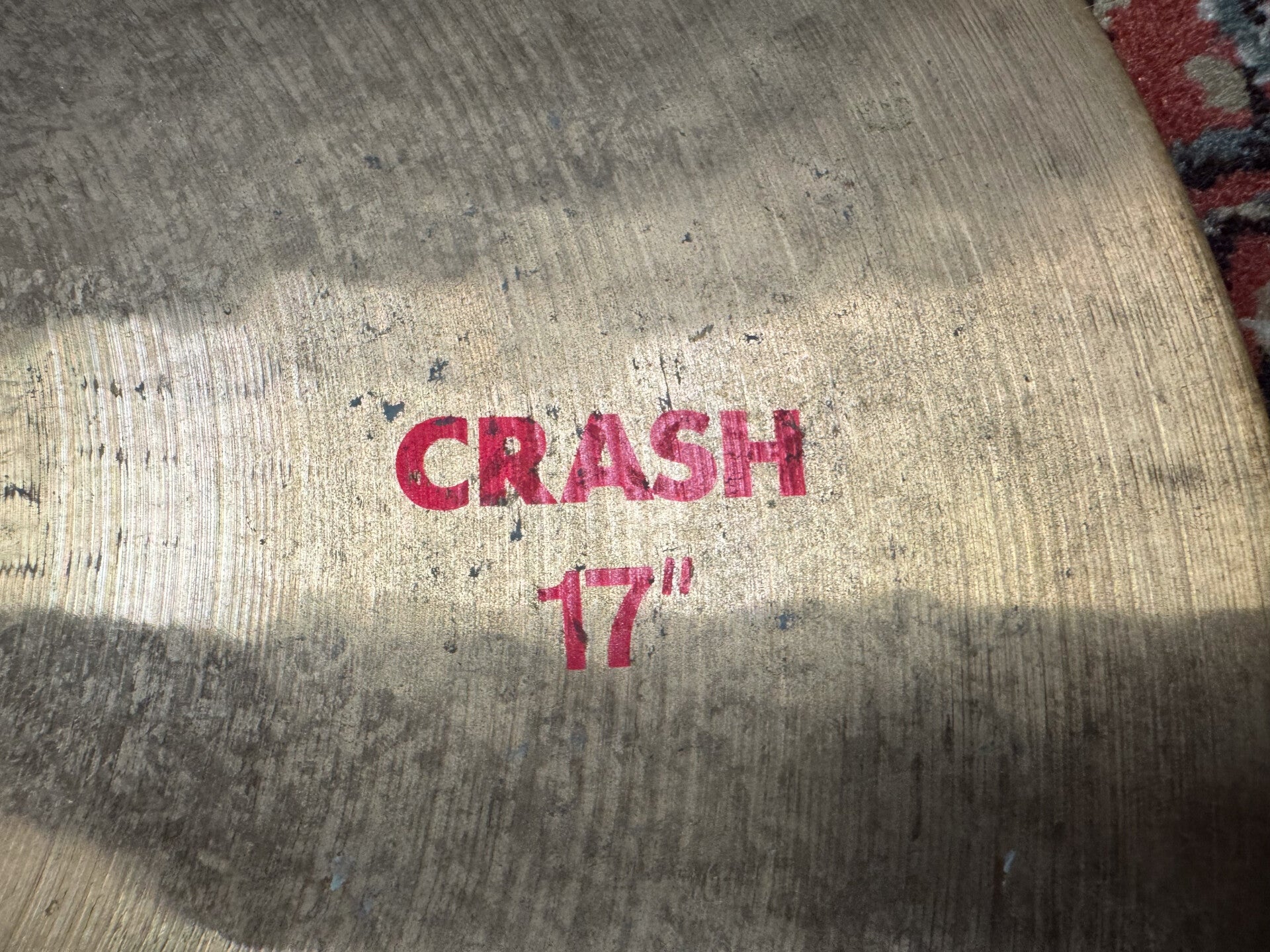 17" Paiste 2002 Red Label Crash with a crack fix but still a great sound. If you don't care about the looks of a cymbal and just going for sound, this players cymbal is just perfect!
