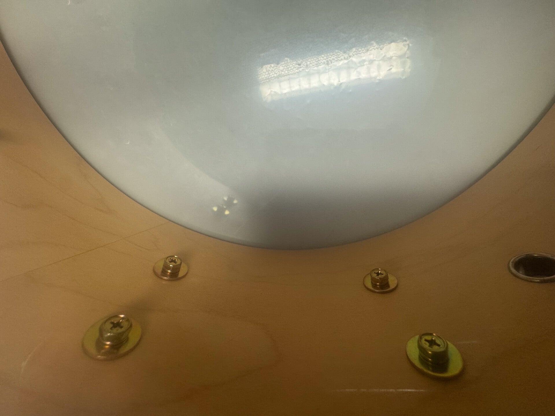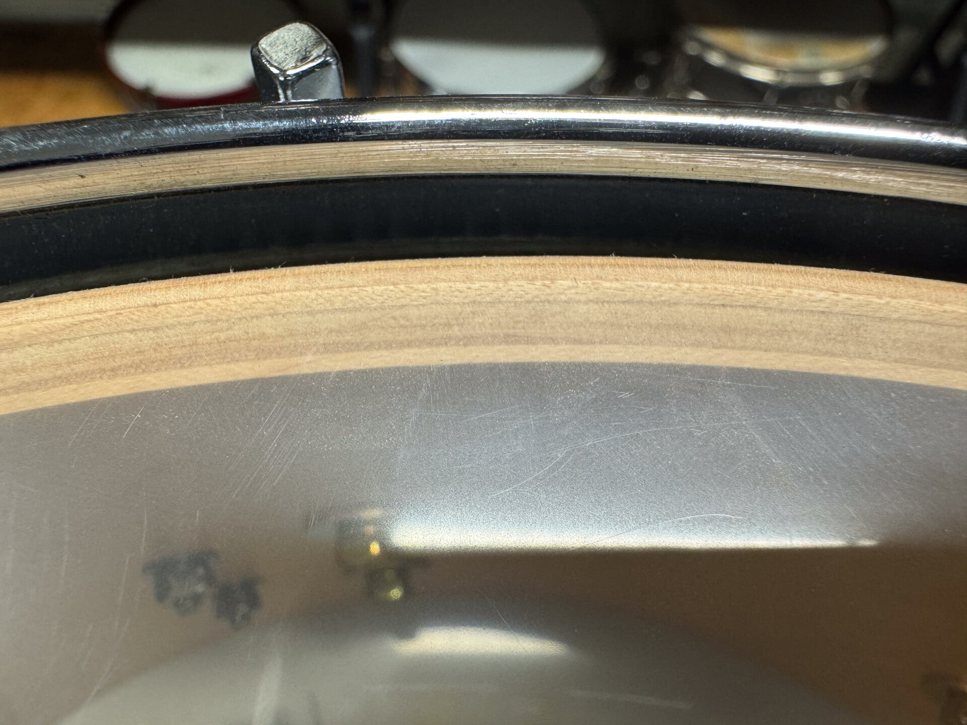 The shell is in excellent condition, both on the inside as on the outside with the edges still in perfect condition as well. The hoops show some minor spots of pitting (hard to capture clearly on the pictures).