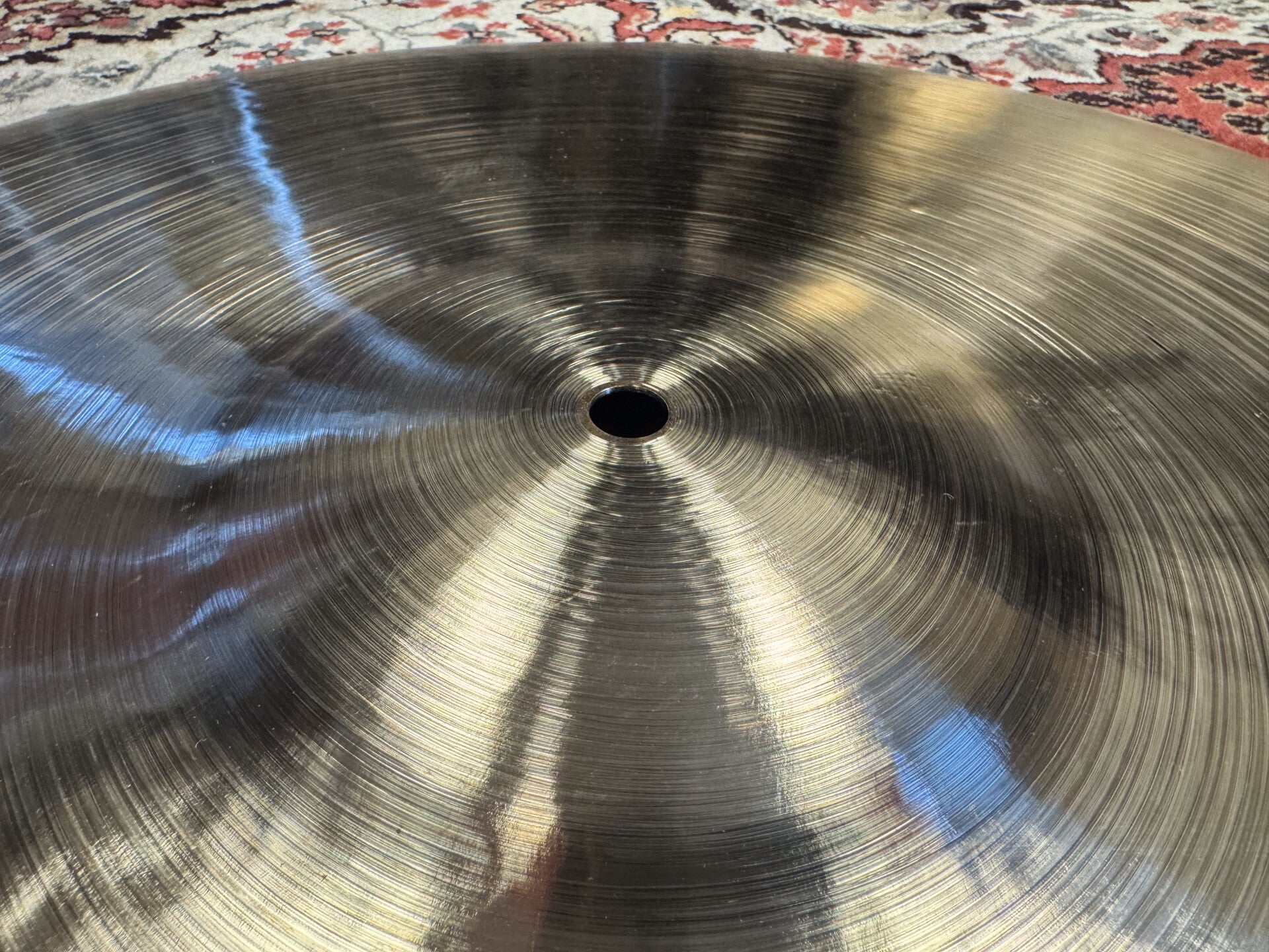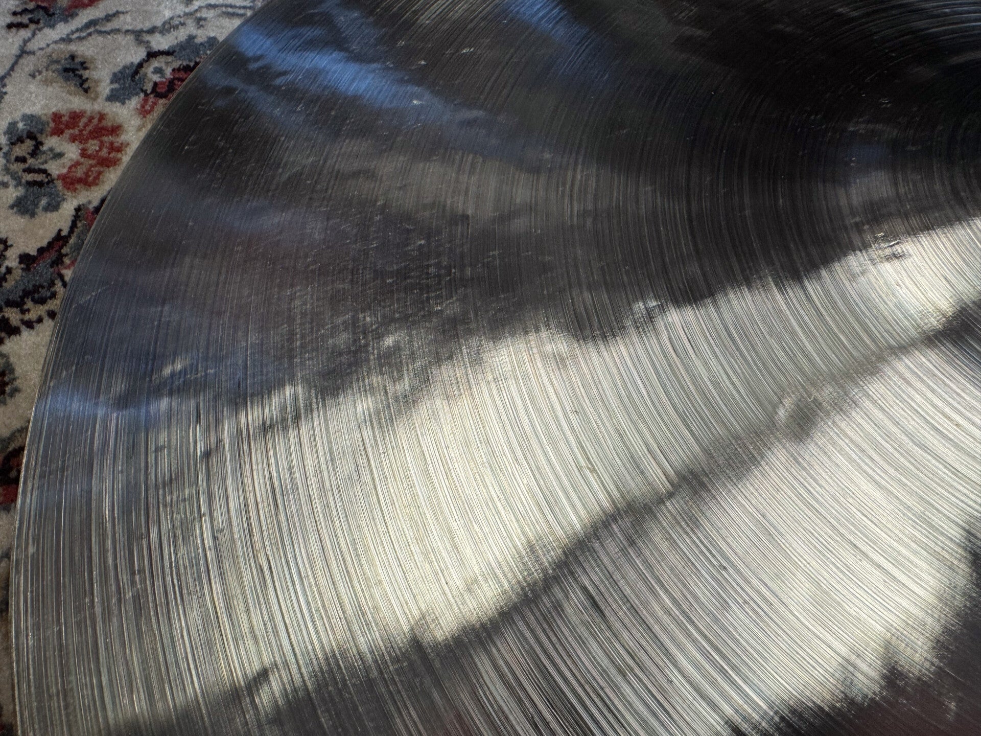 22" Ride cymbal made by belgium artisan belcymbal boutique. This cymbal was made from a chinese blank and comes in at a weight of 22" grams. It's very well balanced when it comes to bright stick articulation, harmonic overtones and a nice warm and washy crash. Absolutely gorgeous cymbal displaying a great amount of craftsmanship!!