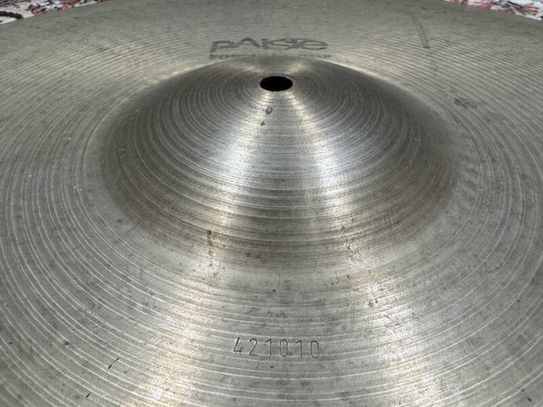 Rare 24" Paiste Formula 602 Ride from 1974. I have to say that the ride is way more dry than I'd expected it to be. It's very articulated with a clear wooden touch and a dark fundamental tone for 602 standards. This particular one is on the heavy side (3500-3600 grams) so it is not great as a crash, but very interesting as a ride for sure!