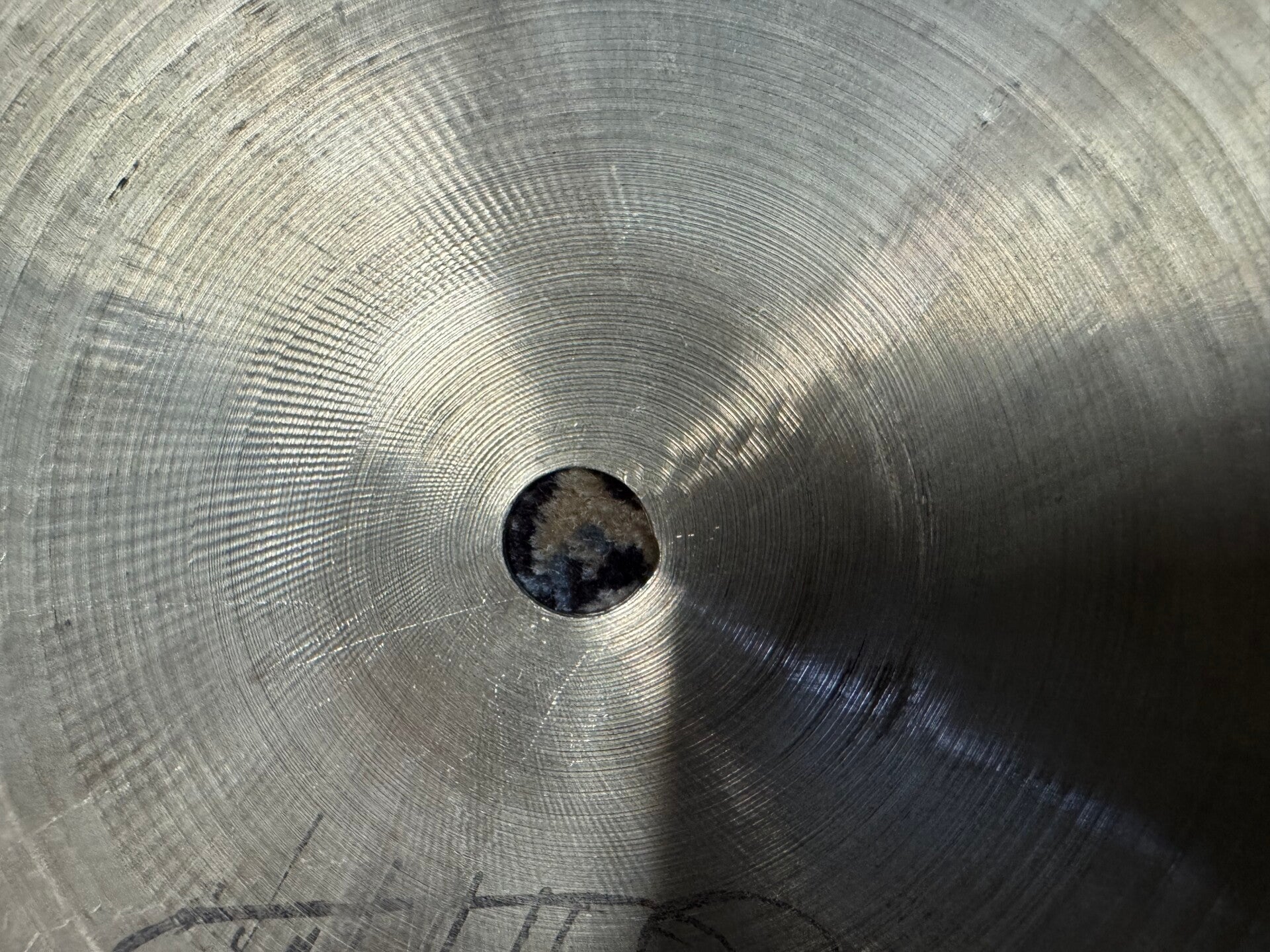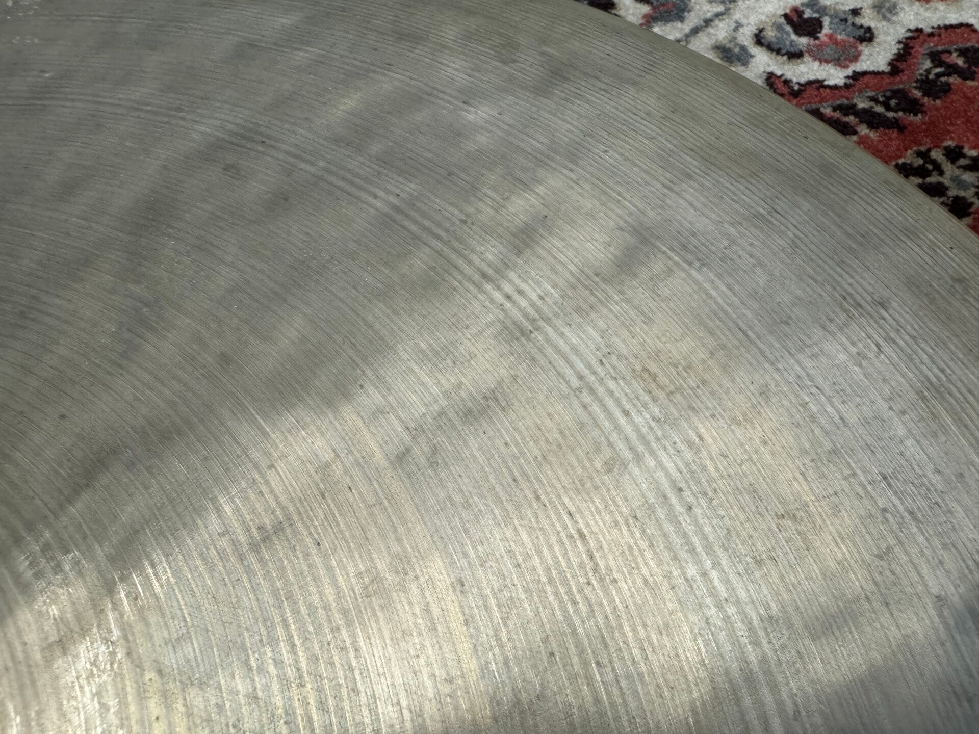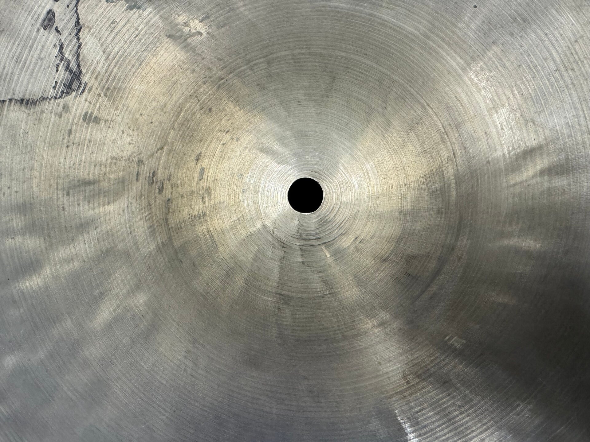 22" K. Zildjian (Istanbul) New Stamp Medium Ride at a weight of 2920 grams. This particular one has an interesting profile. The bell is flatter than most other New Stamp rides and the profile of the cymbal is a little more umbrella shaped. It's still a pretty heavy cymbal though, so the result is a semi complex ride with a distinctive stick articulation with a ton of smokey and wooden tones to it. You might want to experiment a bit with tape on this one, since the sustain is rather long on it, but that all depends on the setting in which you'd use it of course.