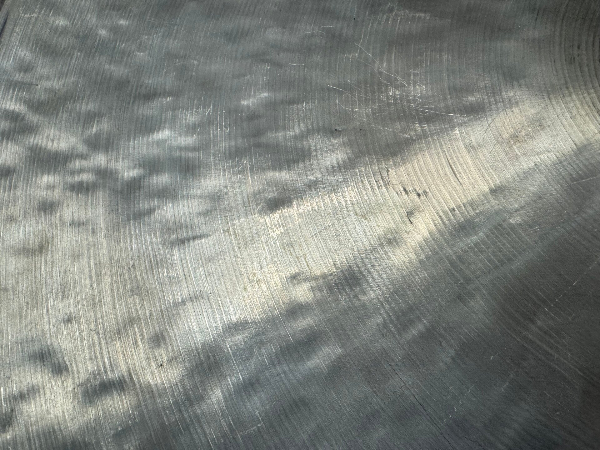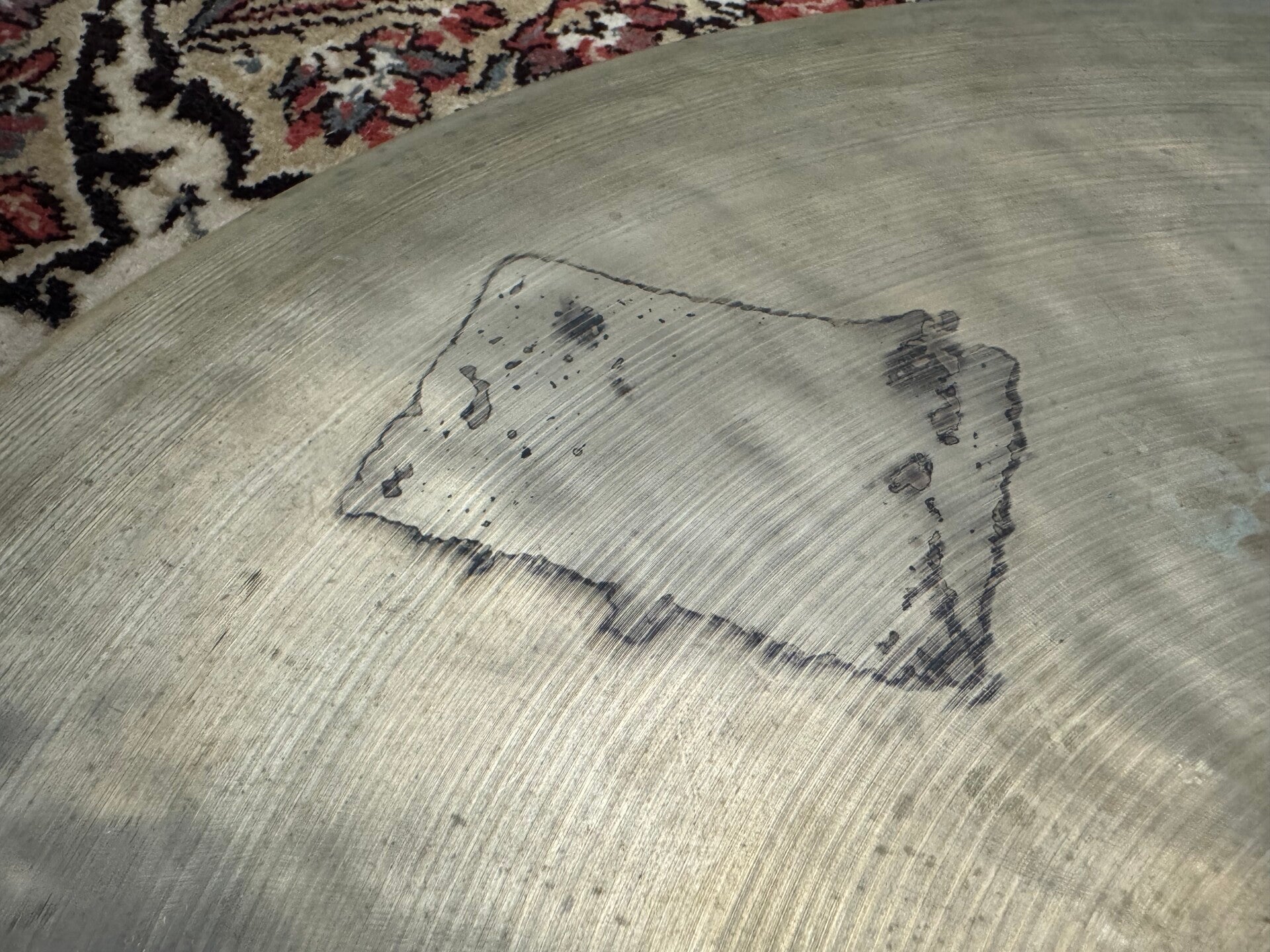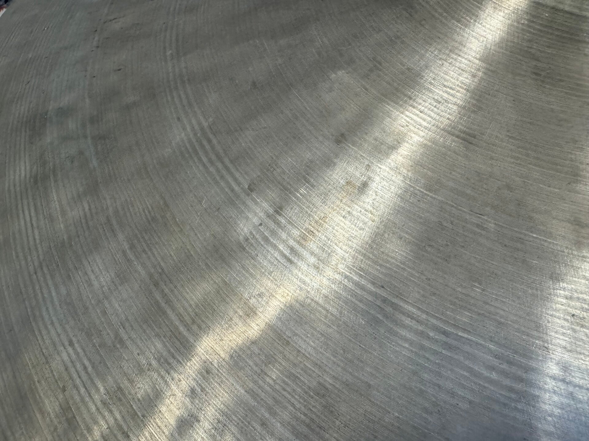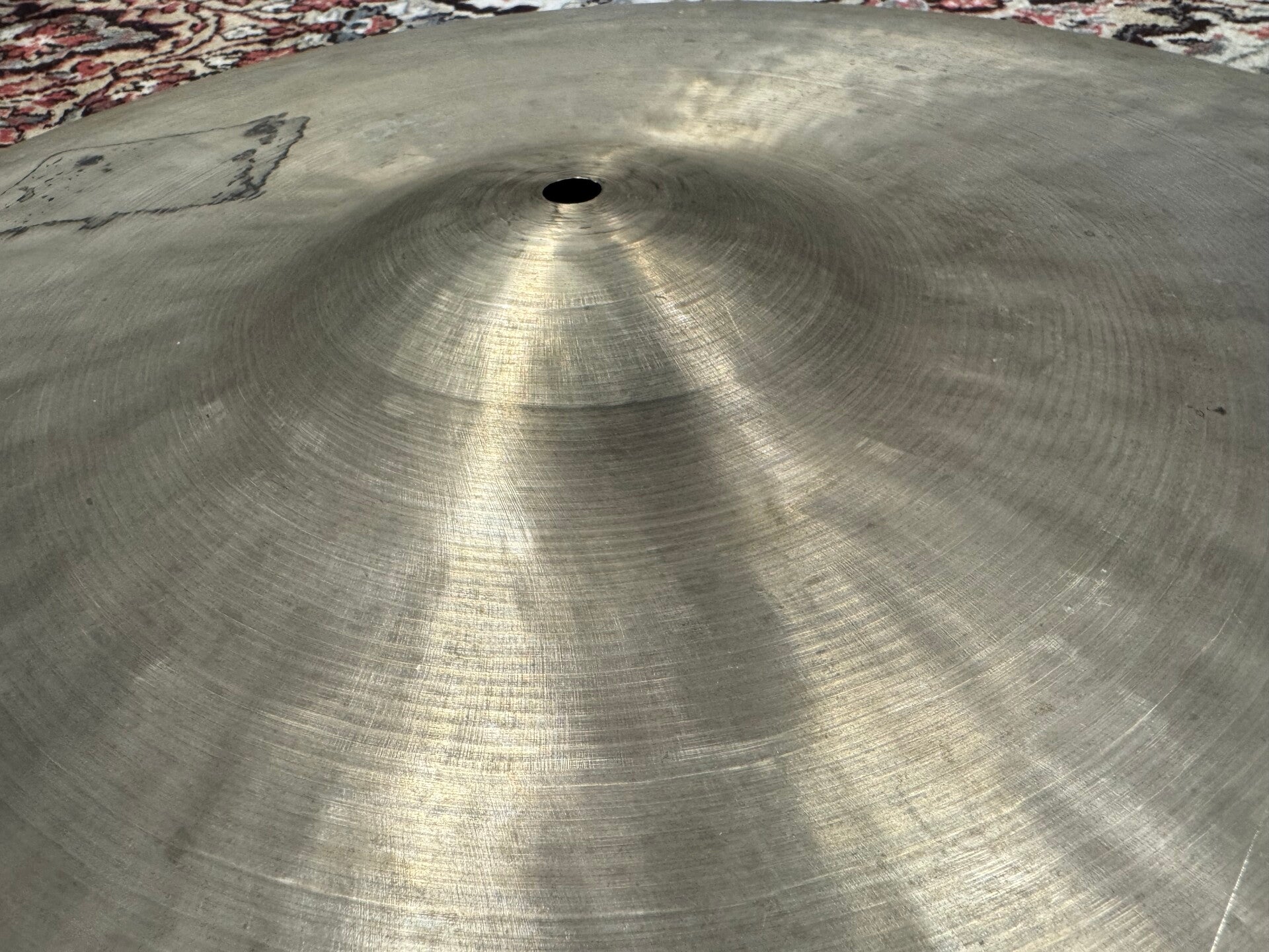 22" K. Zildjian (Istanbul) New Stamp Medium Ride at a weight of 2920 grams. This particular one has an interesting profile. The bell is flatter than most other New Stamp rides and the profile of the cymbal is a little more umbrella shaped. It's still a pretty heavy cymbal though, so the result is a semi complex ride with a distinctive stick articulation with a ton of smokey and wooden tones to it. You might want to experiment a bit with tape on this one, since the sustain is rather long on it, but that all depends on the setting in which you'd use it of course.