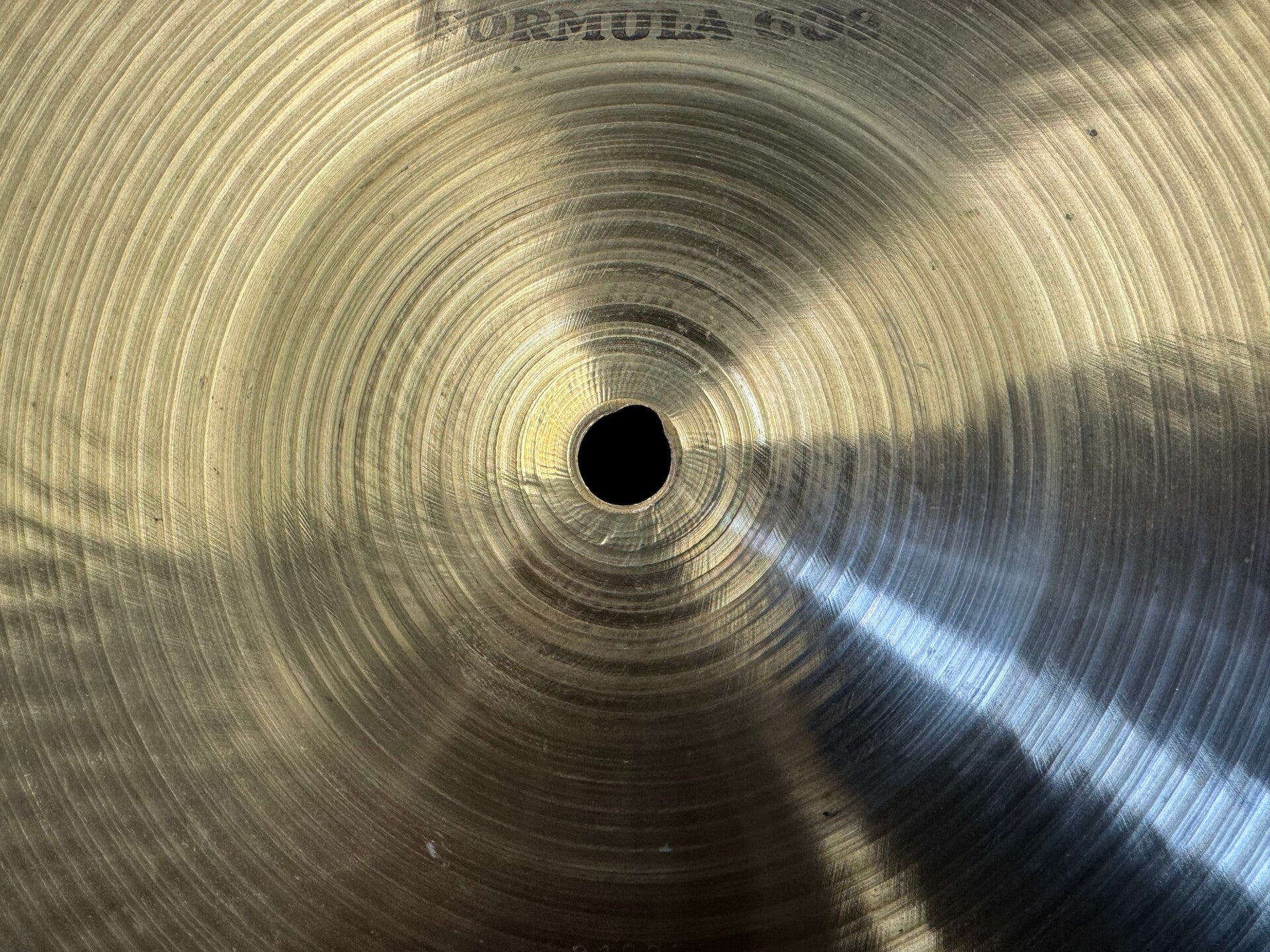 Very light weight 20" Paiste 'Formula 602' Thin from 1973. It comes in at only 1870 grams, making it a perfect thin crash or light weight jazz ride. It has that typical 602 bright touch and a sizzling sustain on it. Opens up very easy and dynamically, making it an easy cymbal to play.