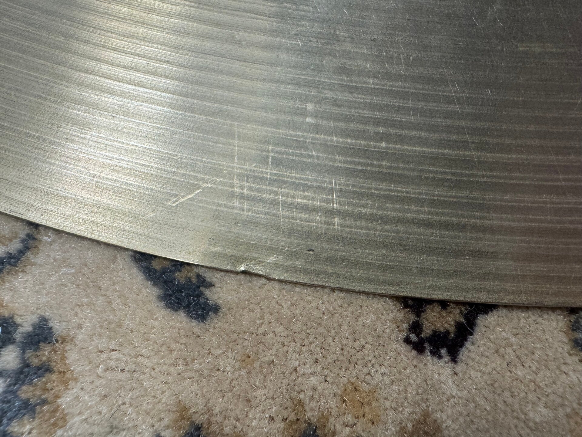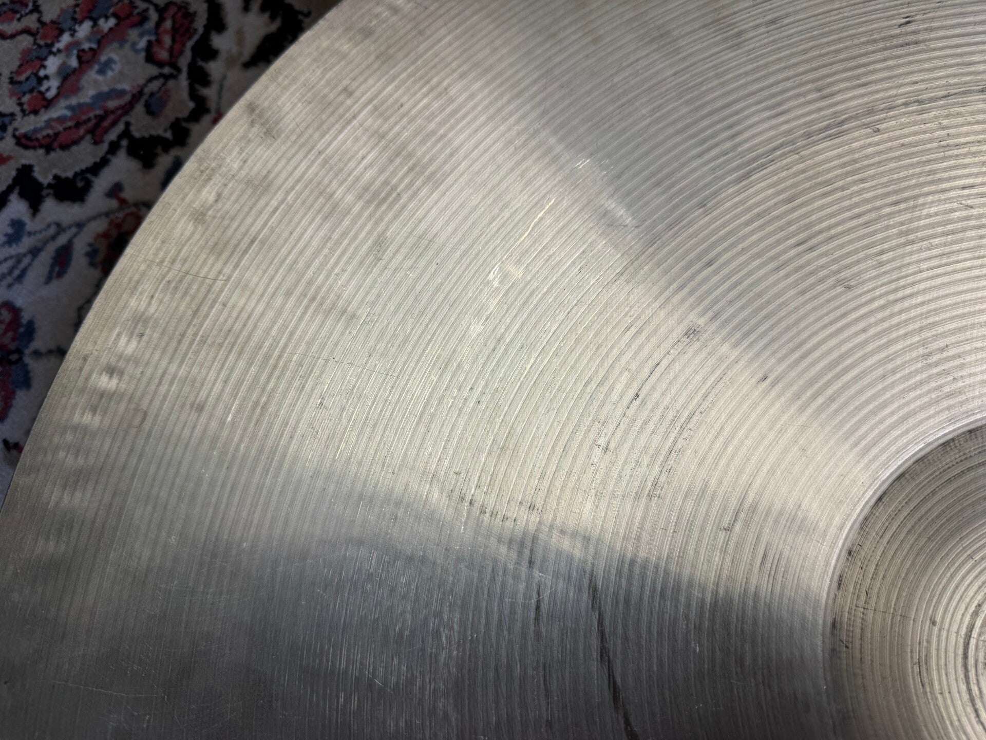 This cymbal is a true unicorn! A thin 24" Paiste 602 Thin that hasn't been cracked over the years. It has a weight of 3280 grams and has a combination of a low fundamental tone due to its big size and low weight, combined with that typical 70s Formula 602 shimmering bring stick articulation. Great for jazz, but also amazing as a big ass crash.