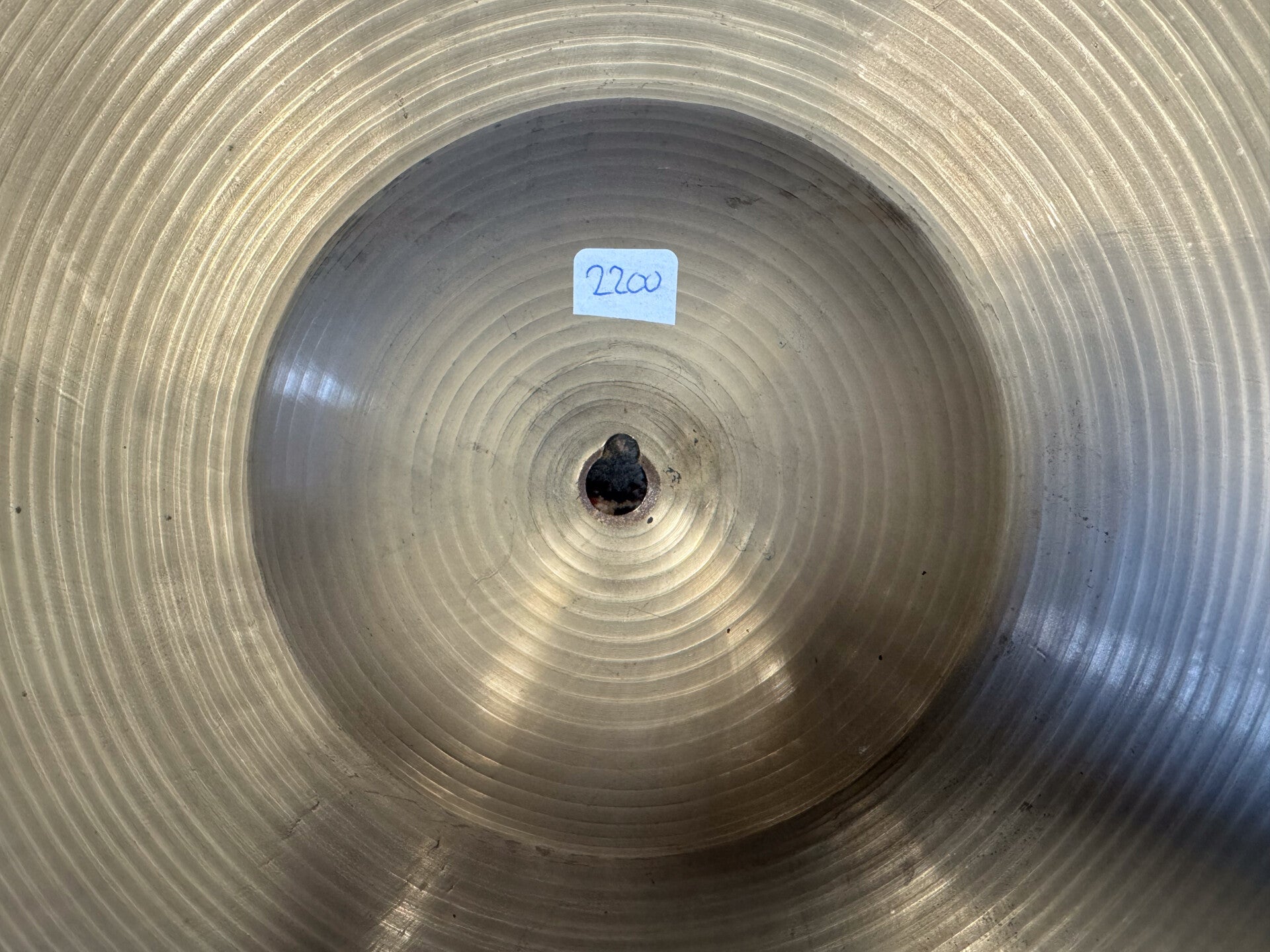 Pre-serial 20" Paiste 'Formula 602' Medium at a weight of 2200 grams with the E-over-Trade stamp from (1962-1965), making it one of the earliest pre serial cymbals in the 602 line. It also still has that 'boob' shaped bell that's distinctive detail for that period. The other interesting thing is that it has the "Hifi Bronce" engraving, which is for the Spanish distribution. There are not many of those out there!
