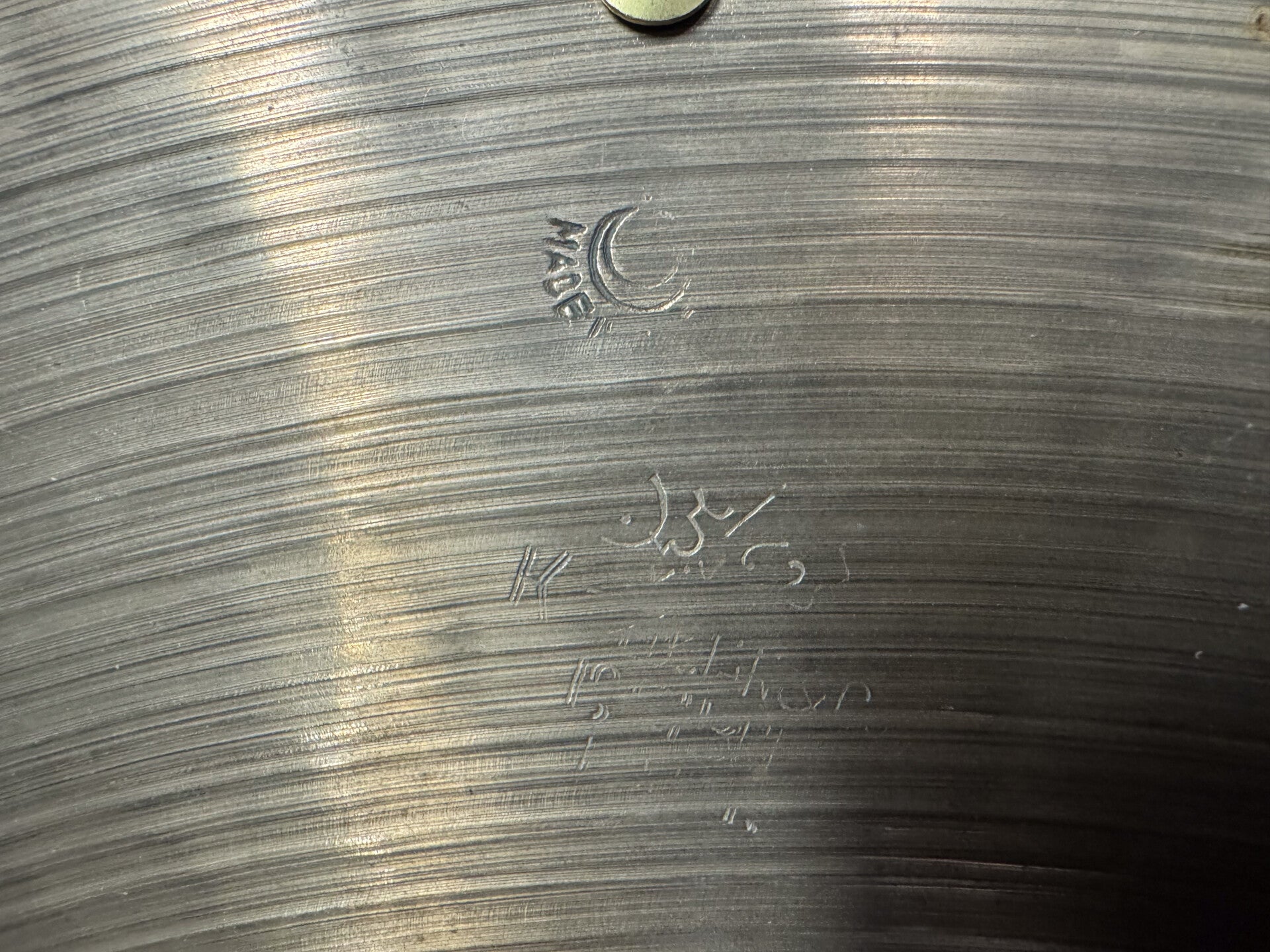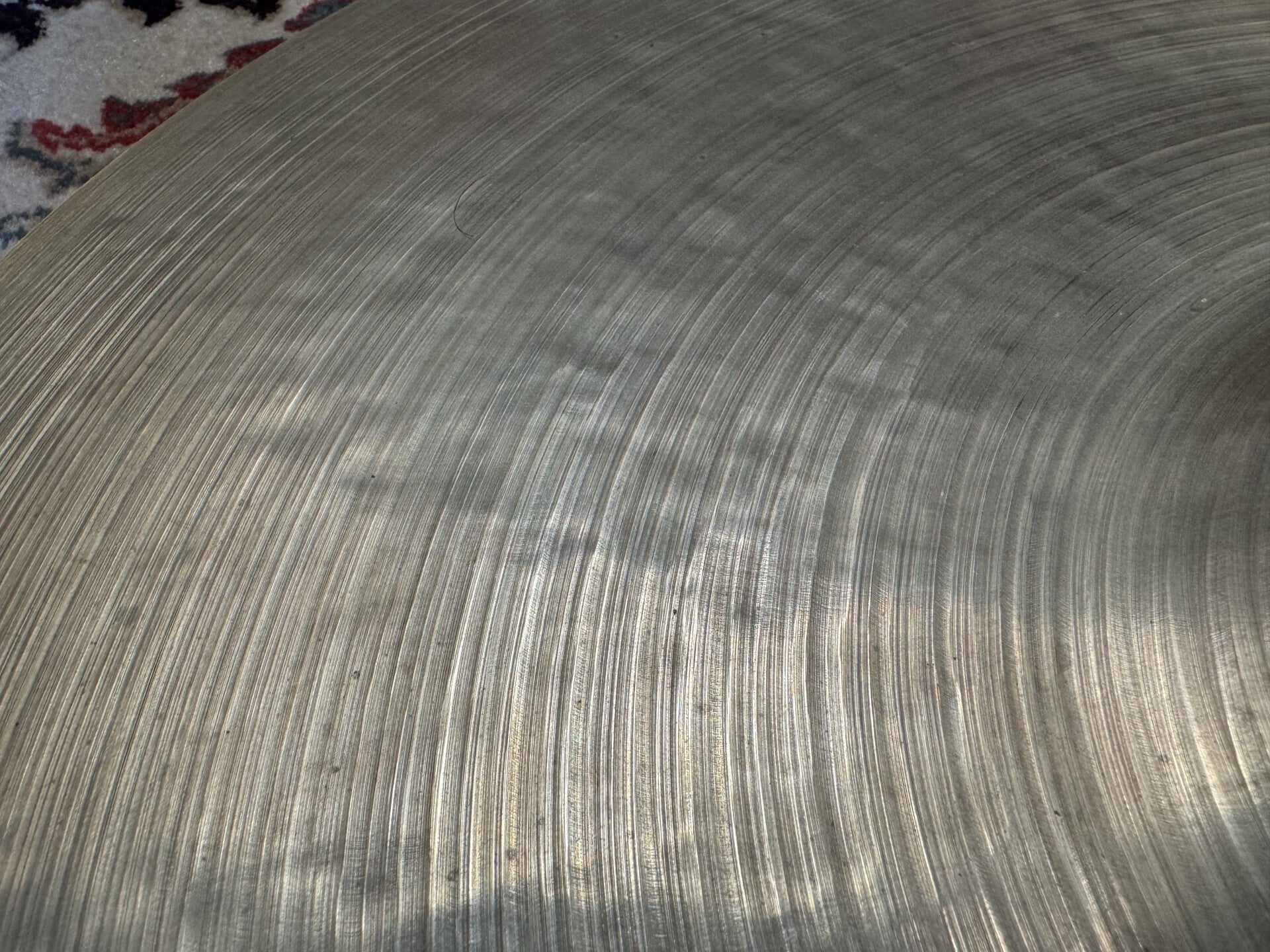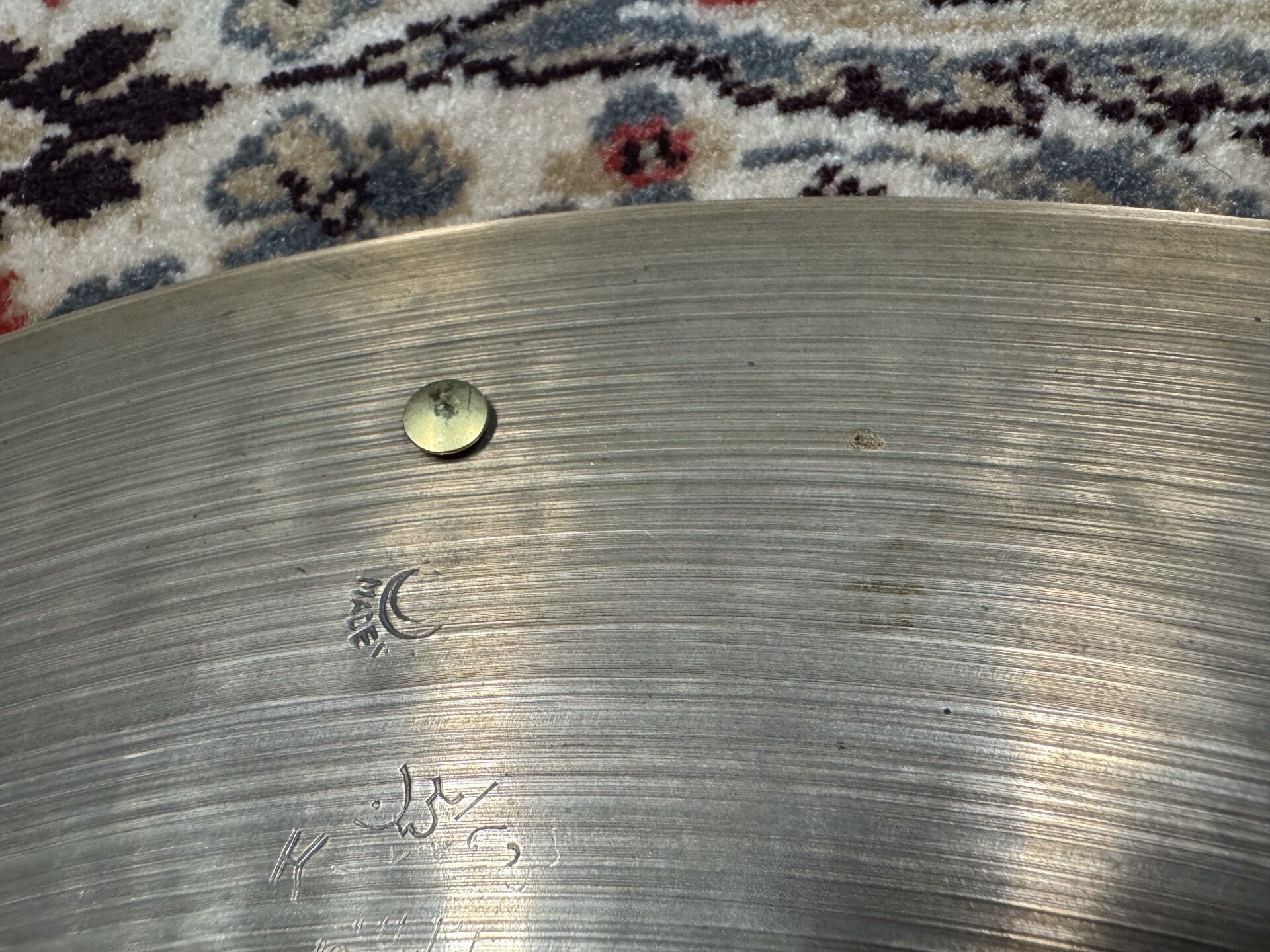 20" K. Zildjian (Istanbul) Intermediate Stamp Sizzle Ride at a weight of 1805 grams. Due to its stiffness, it's rather articulated and not too heavy on the wash as you'd expect at a cymbal at this weight. The cymbal has a little edge fix (minor crack that has been fixed), but for the rest it's in really good condition.
