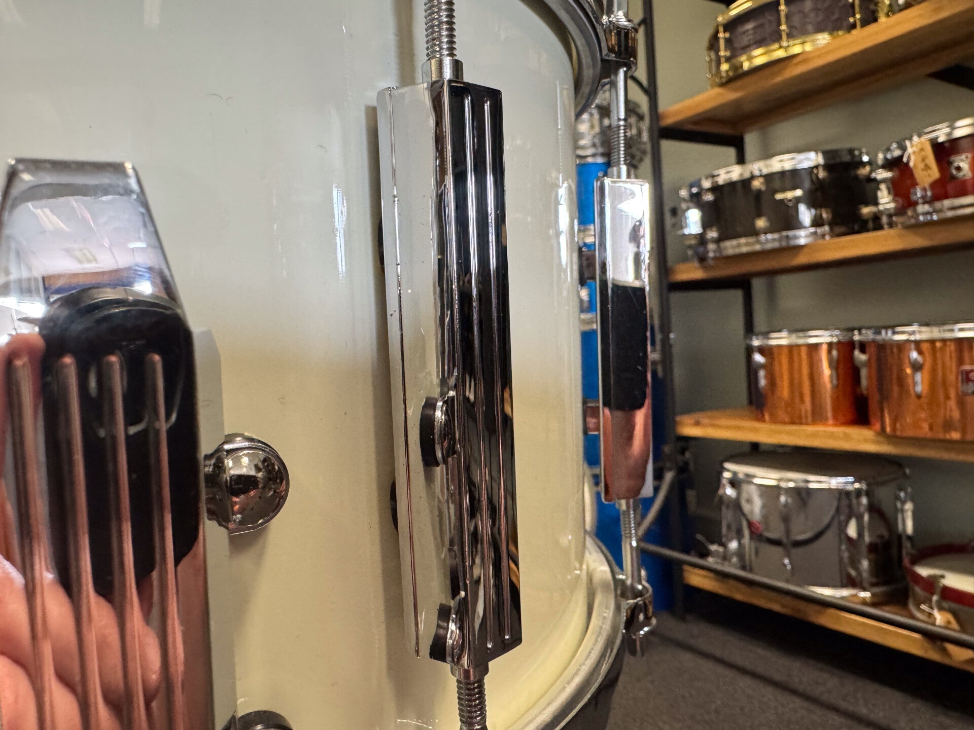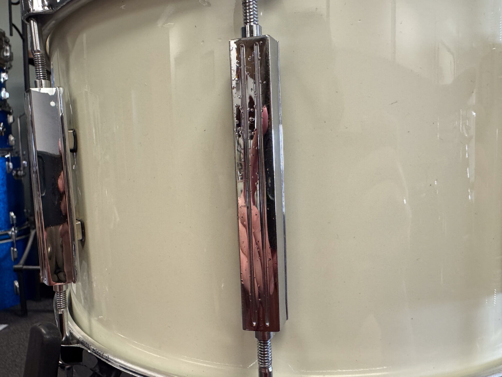 Very rare 14” x 8” Tama AW458 Artwood 14-ply Heavy Birch snare in piano white finish (in and out).