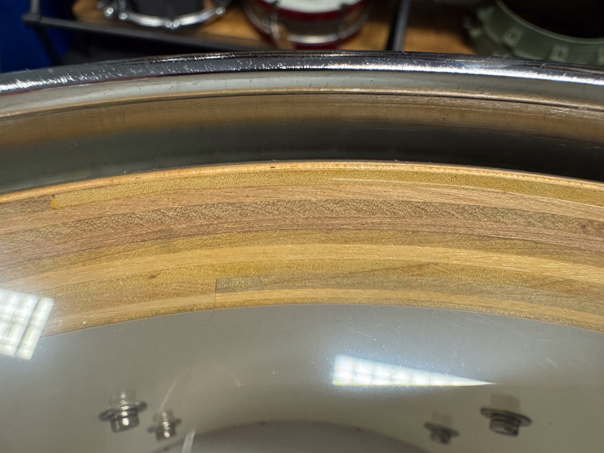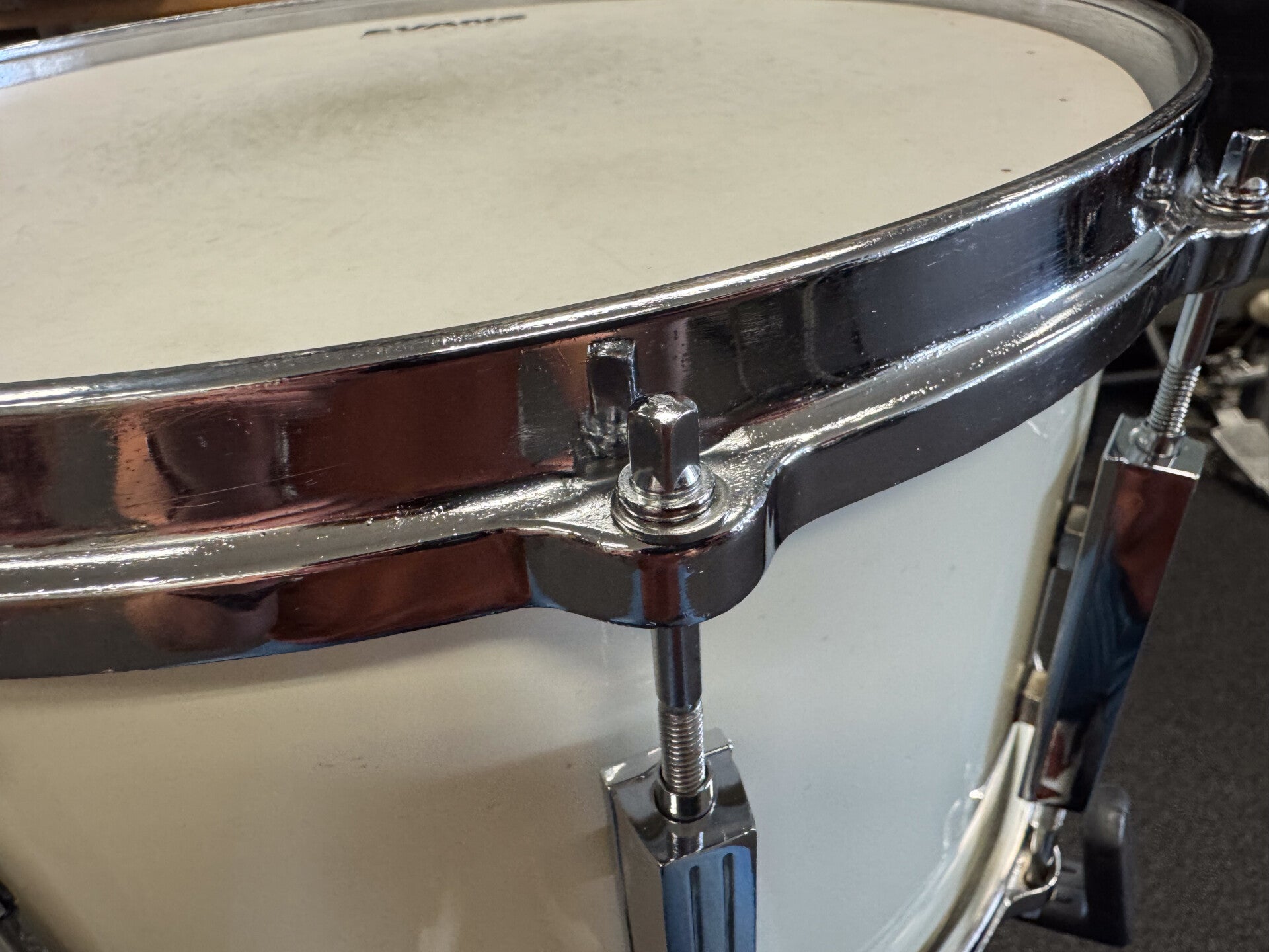 The snare is in really good condition for a 40 year old snare. There’s some dents in the lacquer and 1 little chip in it as shown in the pictures. There’s some pitting on 2 or 3 of the lugs, but for the rest a super clean looking snare. There’s edge are original and still really good.
