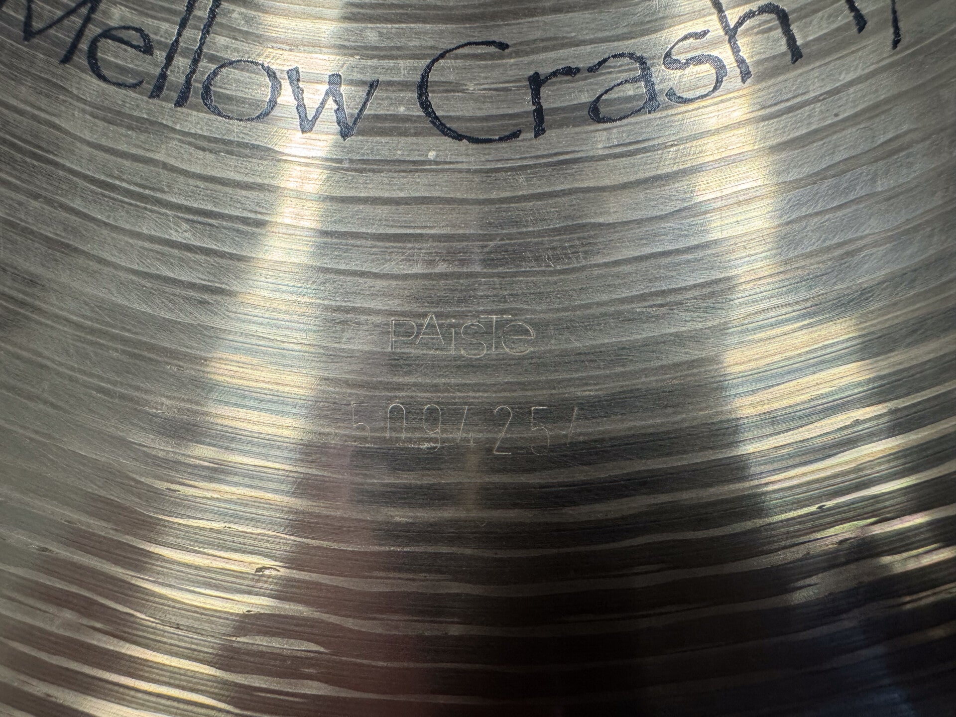This 17" Paiste Signature Mellow Crash does exactly what the name says it does. It's warm and mellow, quite responsive and never too much in volume, length of sustain and in he amount of complexity it brings. This crash would fit in pretty much every genre!
