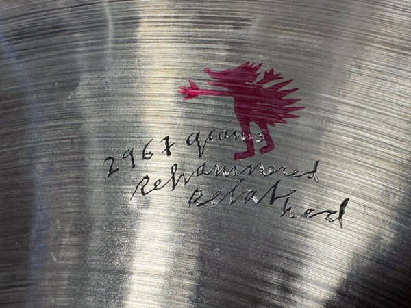 A 24" Zildjian Avedis Ride that has been modified into a hammered and relathed paper thin cymbal at a weight of only 2965 grams.
